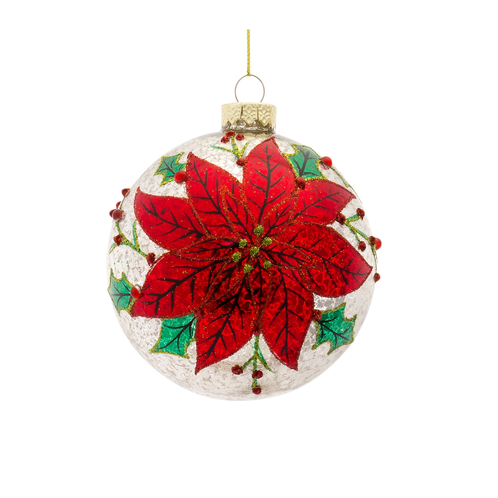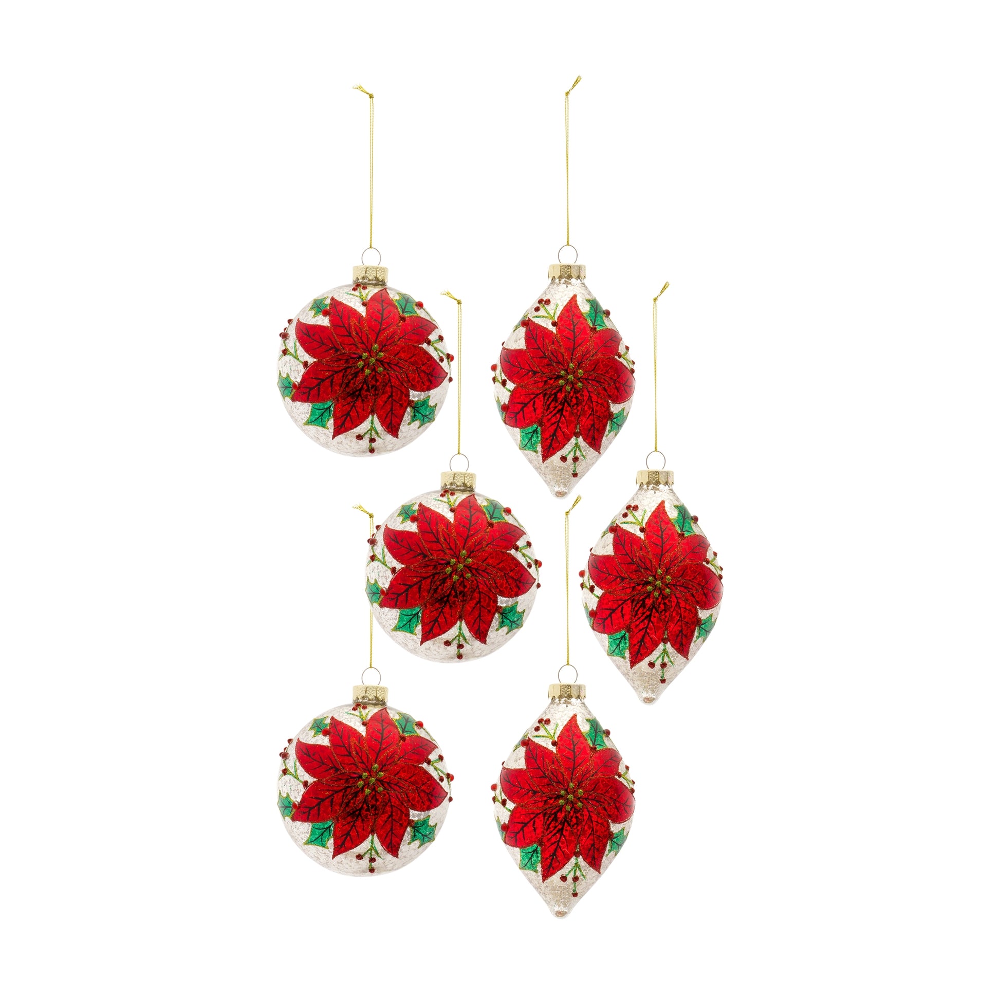 Adorn your Christmas Tree with this beautiful set of Ball Ornaments. Featuring two assorted designs, the classic ball and onion ornament design paired with the bold poinsetta artwork with holly leaf and berry accents makes this set the perfect addition to your holiday tree decor. The pieces can be used as gifts for friends to cherish, or you can display the set on your own Christmas tree and enjoy them for years to come.
