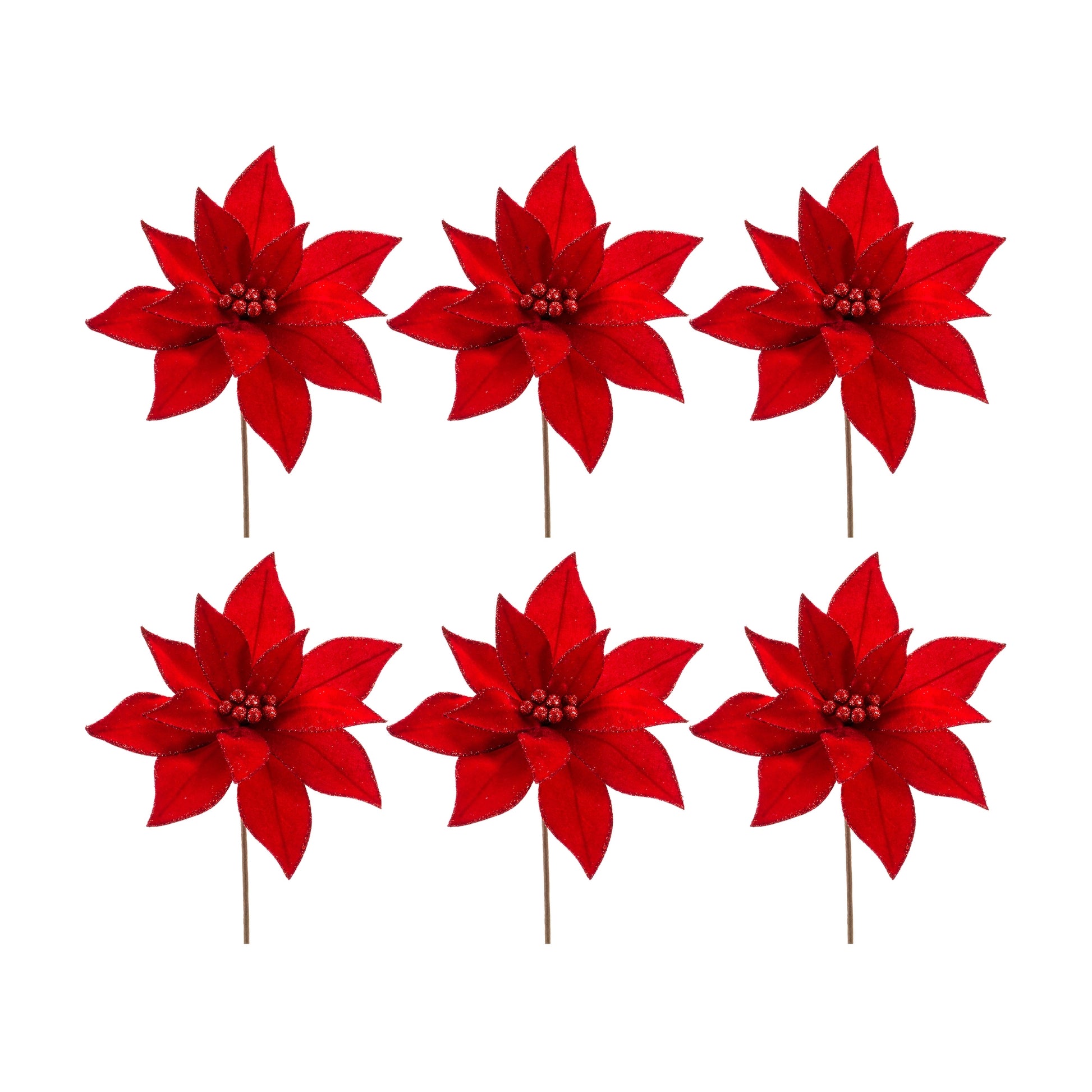Poinsettia Stem (Set Of 6) 23.5"H Polyester, Red