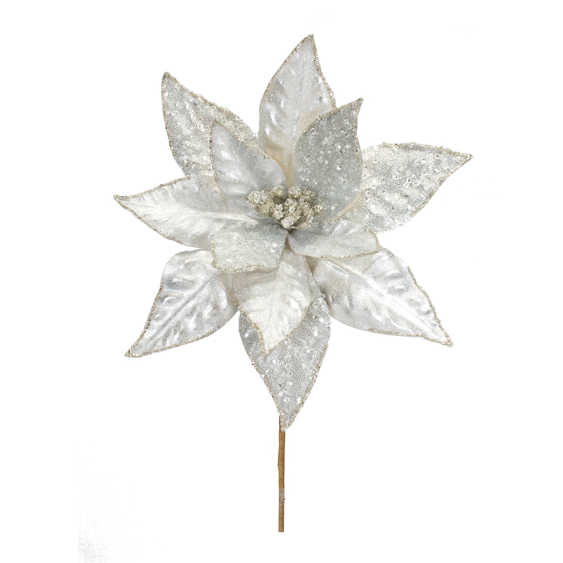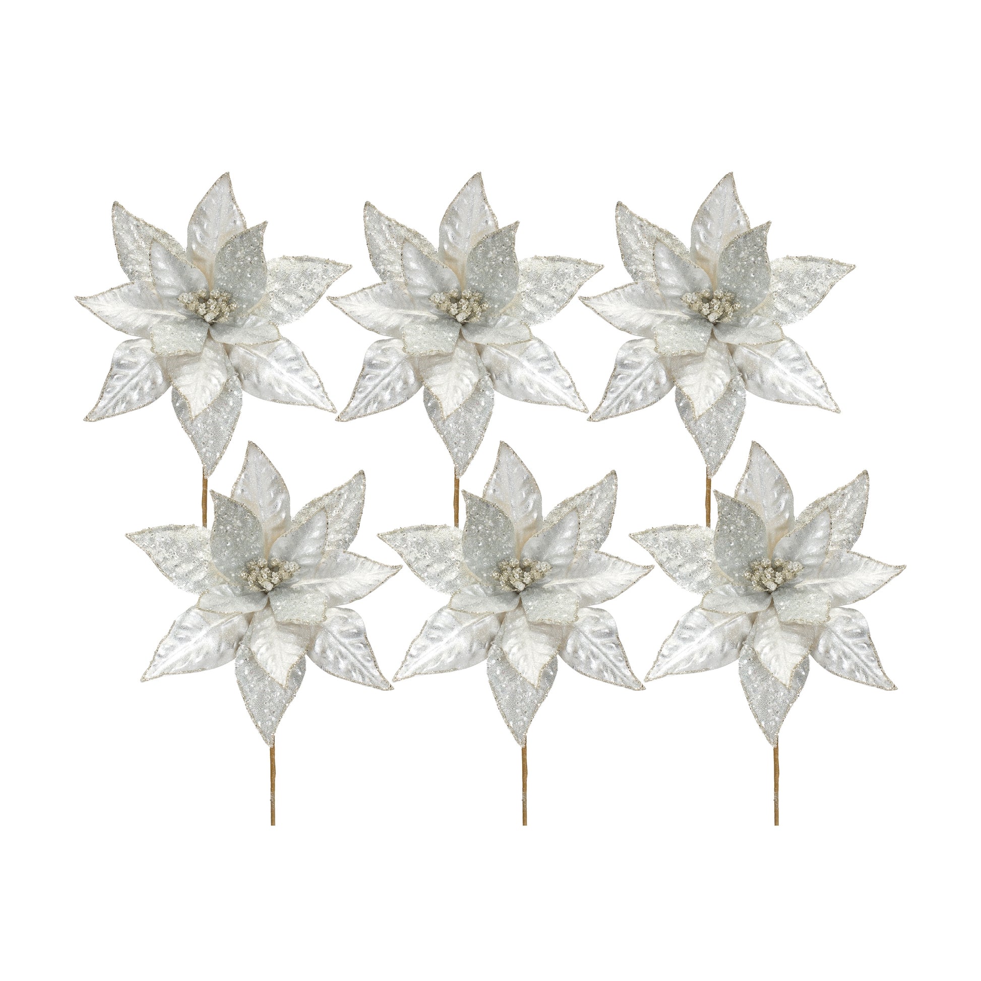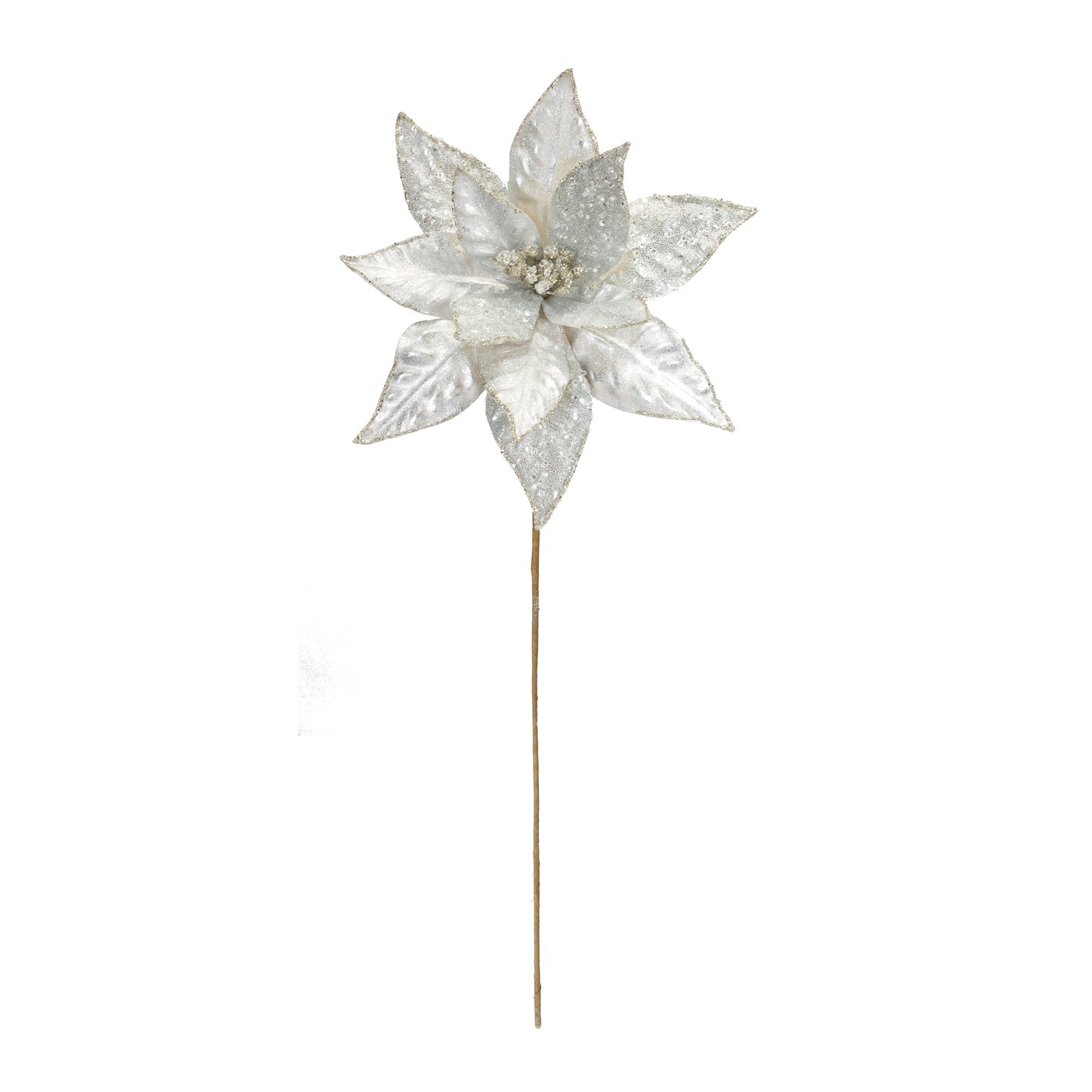 Poinsettia Stem (Set Of 6) 23"H Polyester, Beige, Silver
