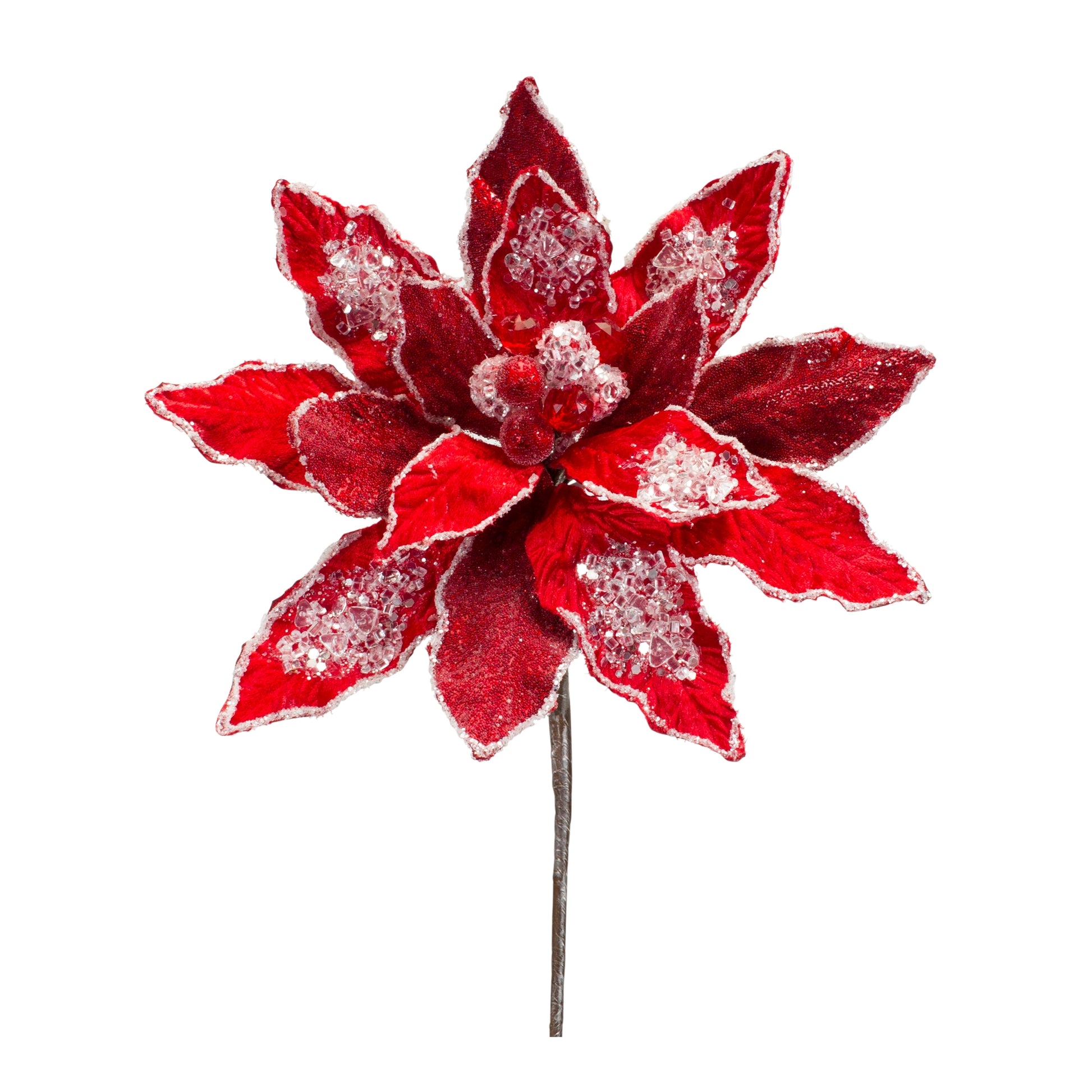 Poinsettia Stem (Set Of 6) 30"H Velvet, Red