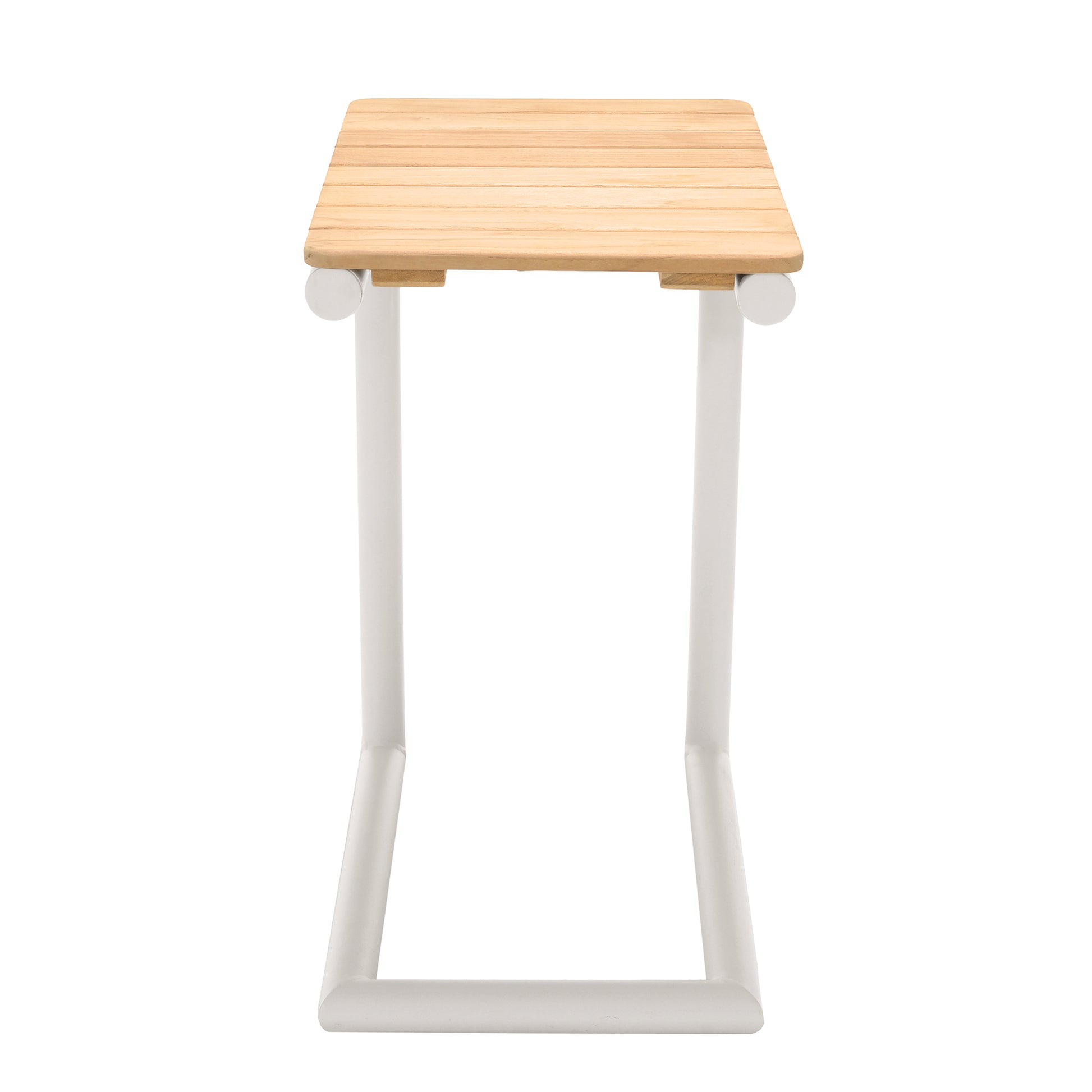 Portals C-Shape Side Table in Light Sand Matte Finish and Natural Teak Wood Top