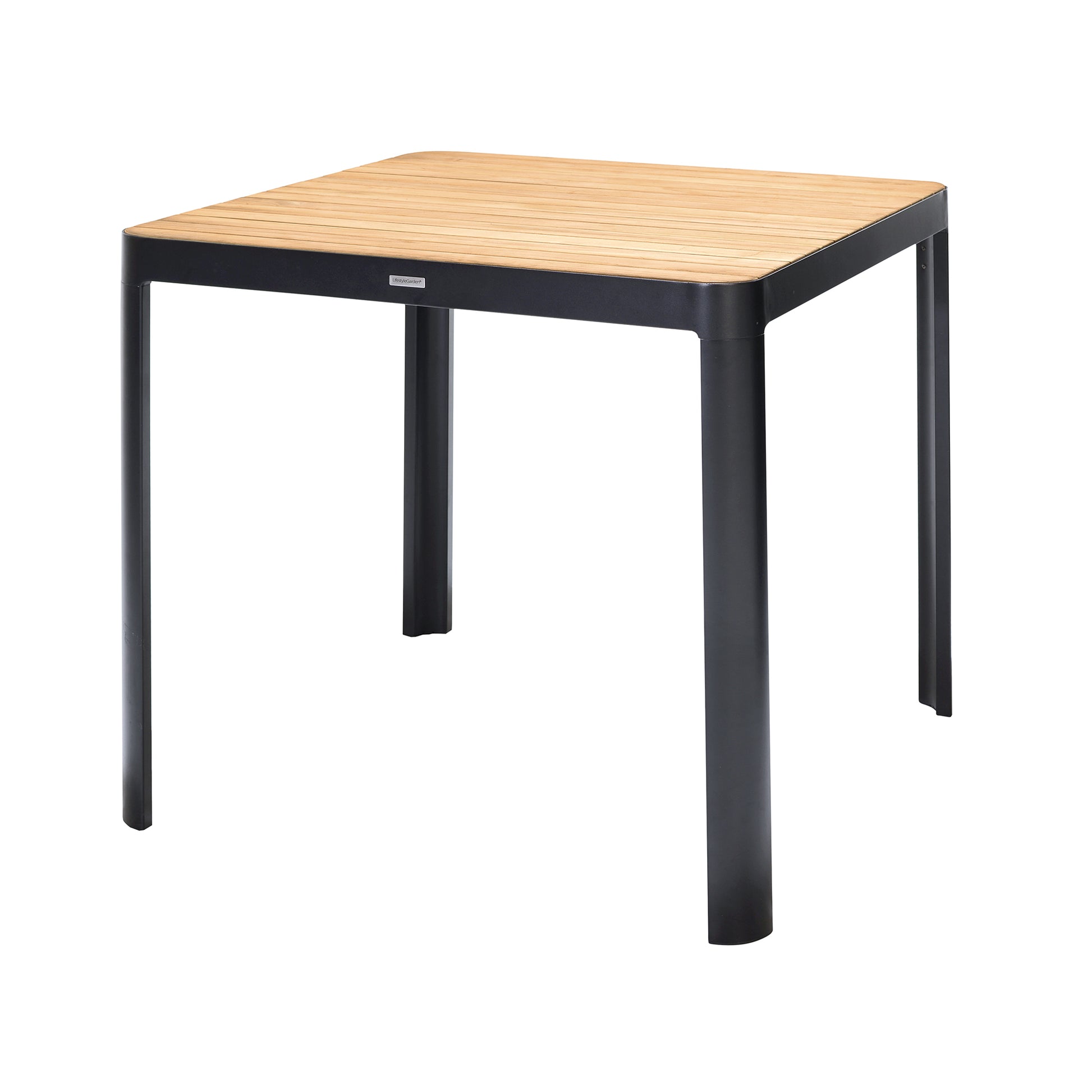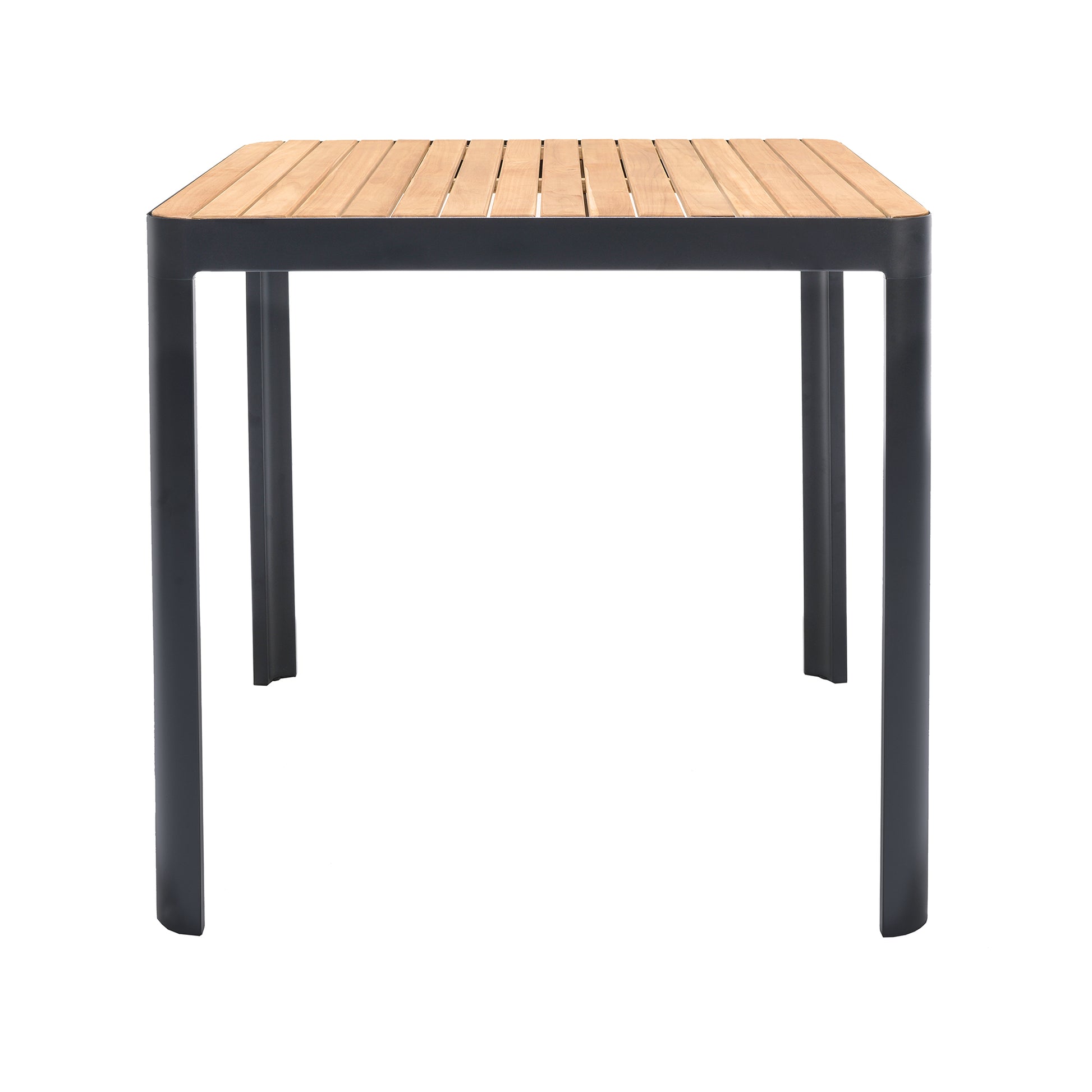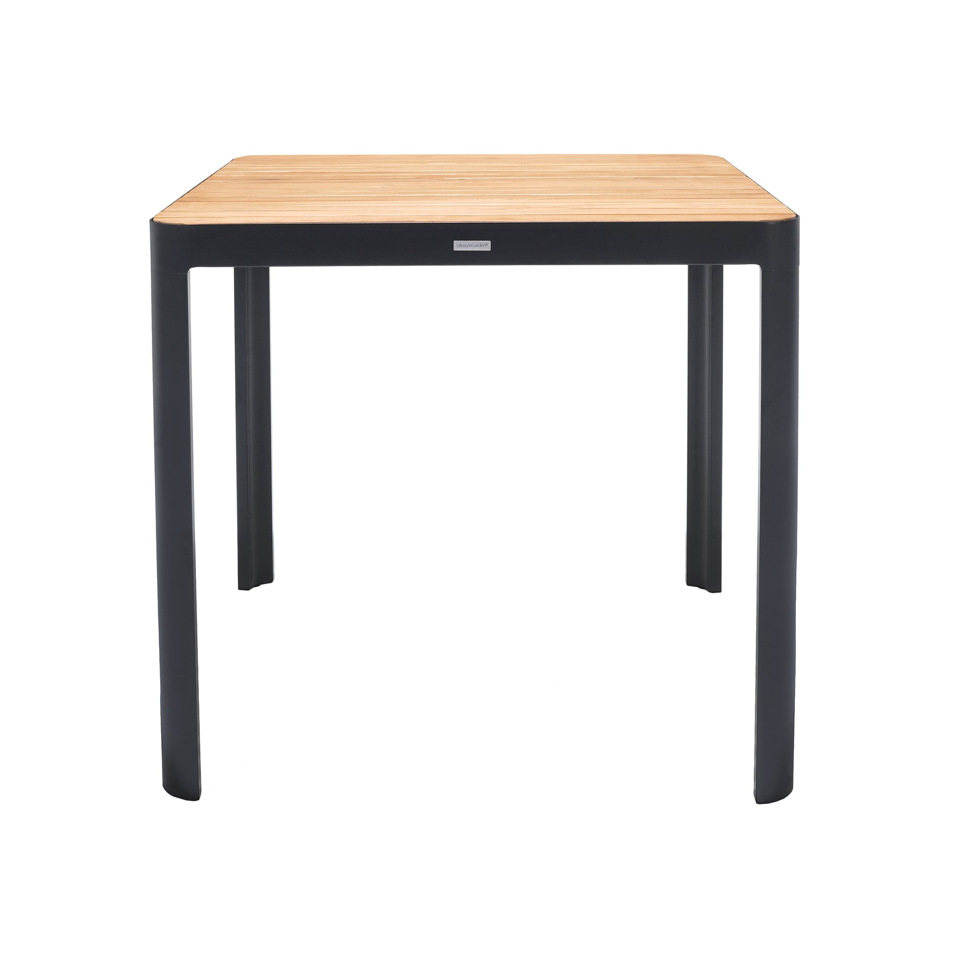 Portals Outdoor Square Bar Table in Natural Teak Wood Top and Black Frame