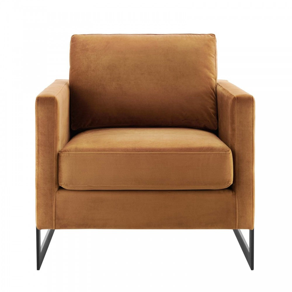 Welcome rich luxury and glam deco style to your living space with the Posse Performance Velvet Accent Chair. A striking addition to the living room, office, bedroom, or entryway, this armchair sits atop a matte black stainless steel sled base complete with squared edges and angular detail. Covered in soft, stain-resistant performance velvet, this upholstered armchair features dense foam padding over no-sag springs for a premium seating experience abounding in comfort and support. This velvet chair is perfect for offices looking to impress new clients and for anyone intrigued by retro modern designs that develop space and form in an innovative way. Includes non-marking foot pins. Assembly Not Required. Weight Capacity: 300 lbs.