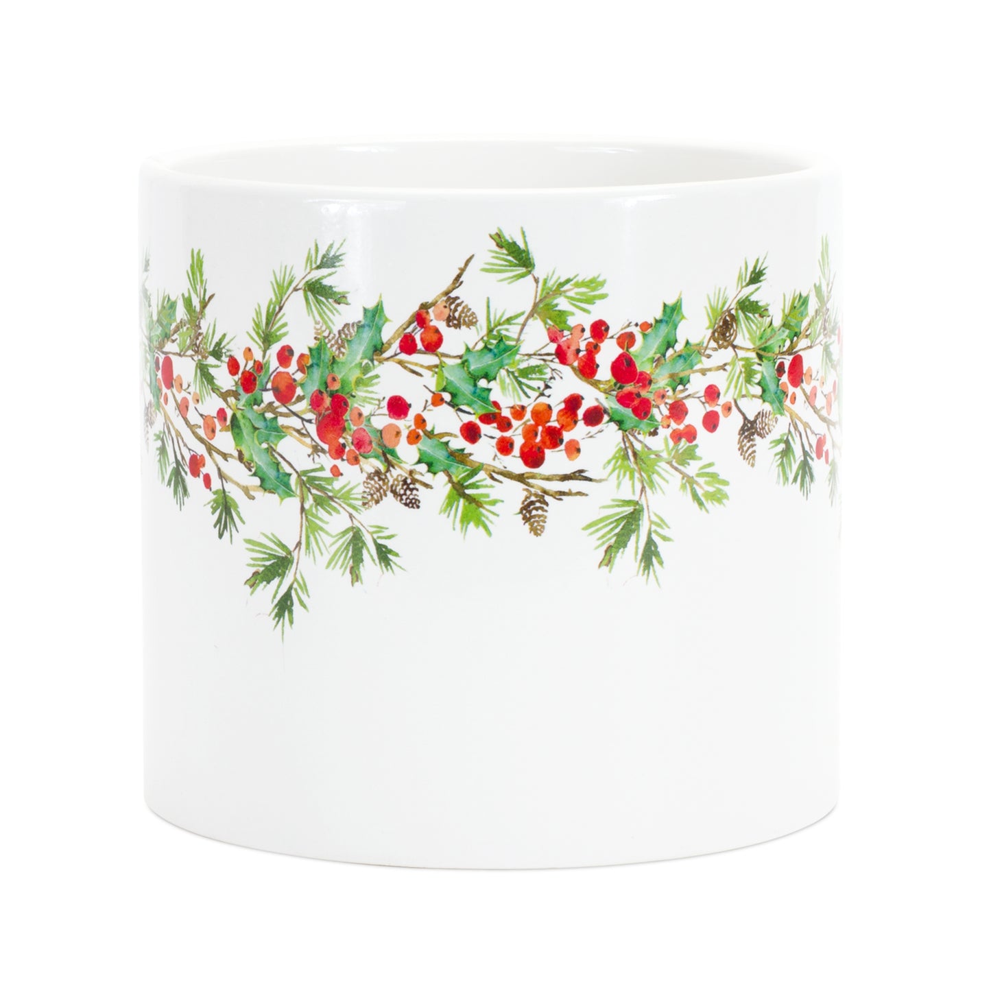 Display your plants in style this holiday season with a stunning set of Decorative Pots. Featuring two assorted sizes, the white glazed finish paired with the bright pine and holly berry design makes this set a great addition to your everyday home decor. The quality dolomite composition and glaze finish is sure to last for seasons to come. Complete the look by dropping in a faux potted plant or floral arrangement.