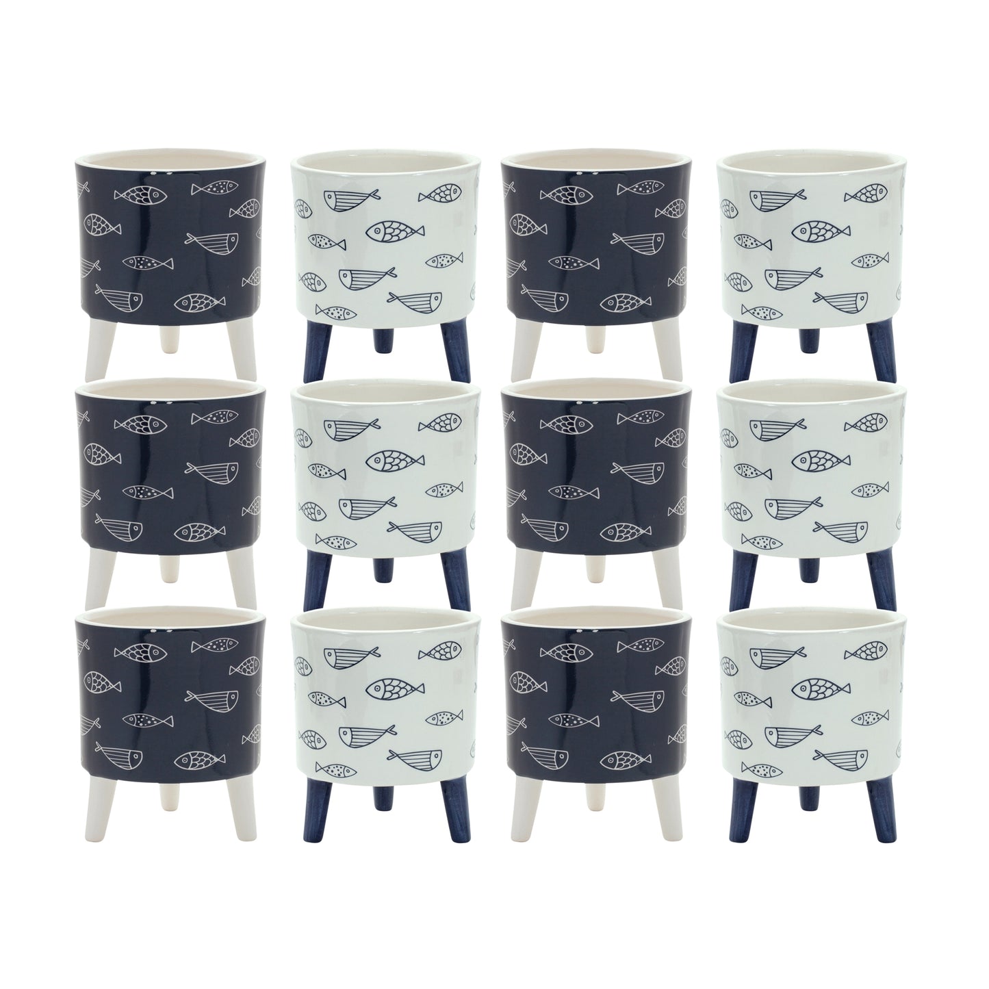 Display your indoor plants in style with this beautiful set of Decorative Footed Fish Pots. The nautical fish design paired with the cool blue and white tones is the perfect combination to create a timeless display. The quality dolomite composition is sure to last for seasons to come. Complete the look by adding a faux potted plant or floral arrangement to the pot.