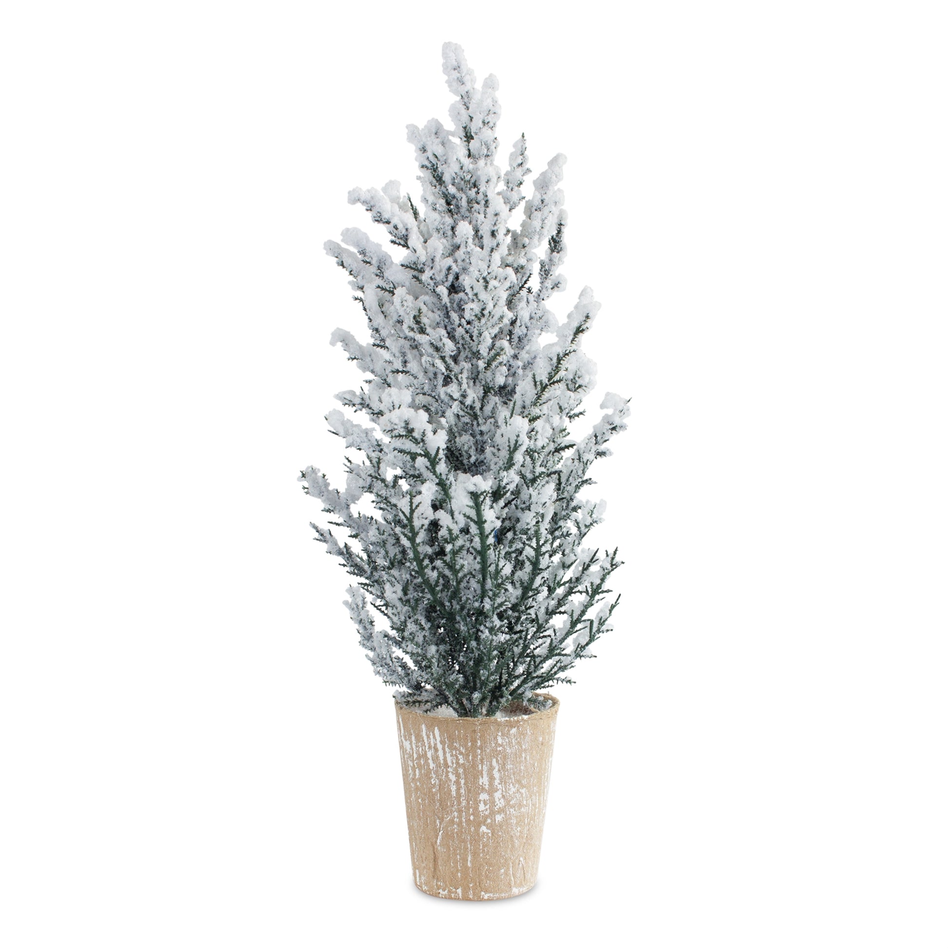 Ring in the holiday season with this beautiful set of Potted Snowy Pine Trees. Featuring four pieces, this set is sure to add an elegant touch of nature to your home decor. The varigated pine branches paired with the "snowy" finish is the perfect combination to create a stunning Christmas display. Place these trees in your entryway or front porch to welcome your guests in style.