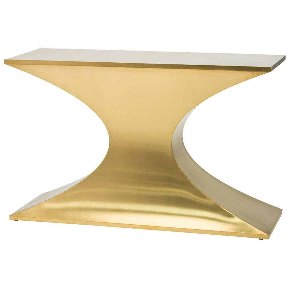 The remarkable Praetorian console embodies a grand, elemental aesthetic. Featuring a monolithic tapered and curved stainless steel pedestal base coupled with a matching stainless steel top, the Pratorian presents a bold singular form.