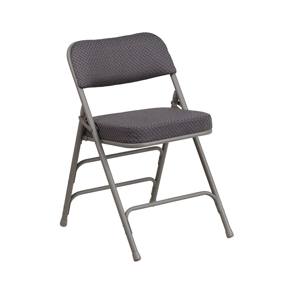 Guests will be amazed in the comfort of this ultra-padded upholstered metal folding chair. Whether you have planned for your guest's arrival or had a sudden influx of family show up on your doorsteps you'll be well prepared with these padded folding chairs. Suitable for everyday use you can host holiday parties, birthdays, girl's night in and game night with chairs that setup quickly and store compactly. Enjoy the good weather by going outdoors to dine and play games. Padded folding chairs provide comfort during extended meetings and social gatherings. Its 18-gauge curved powder coated steel frame is triple braced, and double hinged with leg strengthening support bars to hold up to 300 pounds. Non-marring floor glides on the legs protect your floors by sliding smoothly when you move them. Built for commercial use these attractive chairs are a smart seating solution for your next business meeting as well as in the home for family gatherings and other social events. After outdoor events, store indoors to protect the frames from extreme moisture. With nothing to assemble these chairs come ready to service your needs. [AW-MC320AF-GRY-GG]