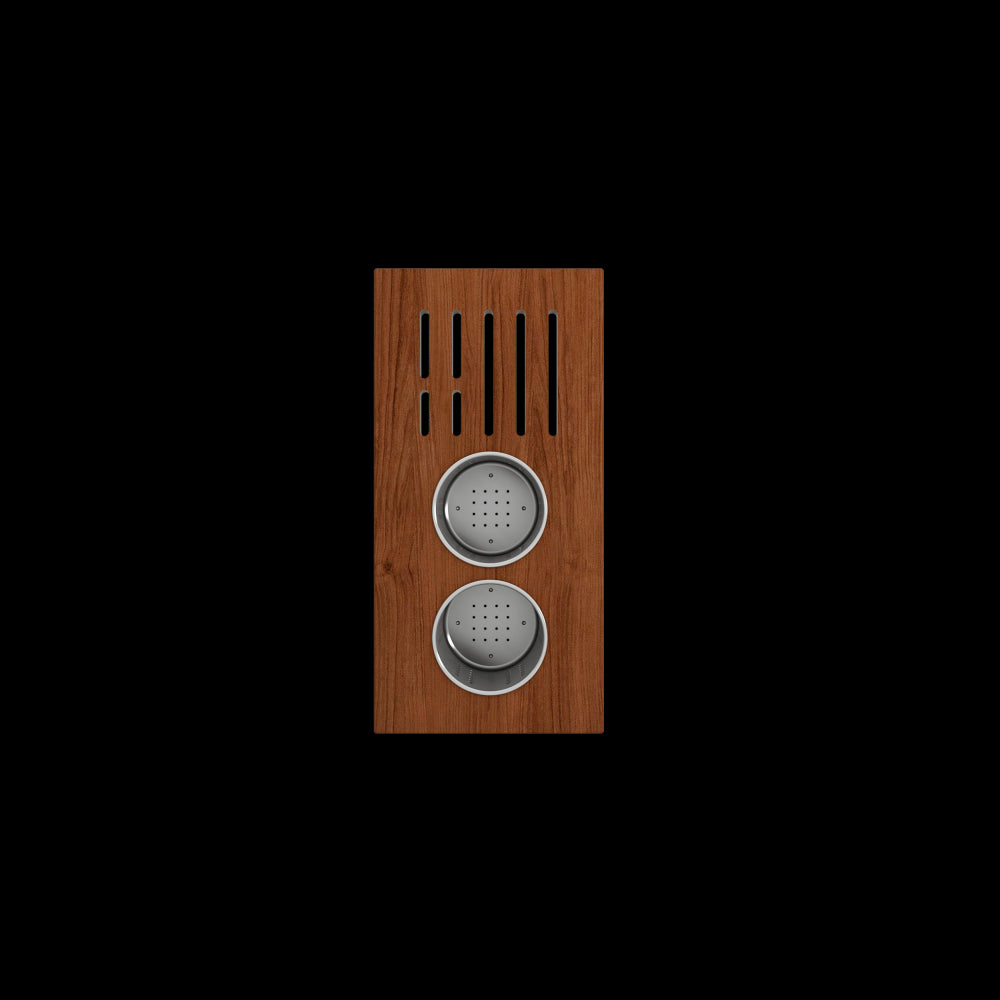 - Hardwood sapele mahogany platform with 2 removable stainless steel colanders and integrated knife slots
