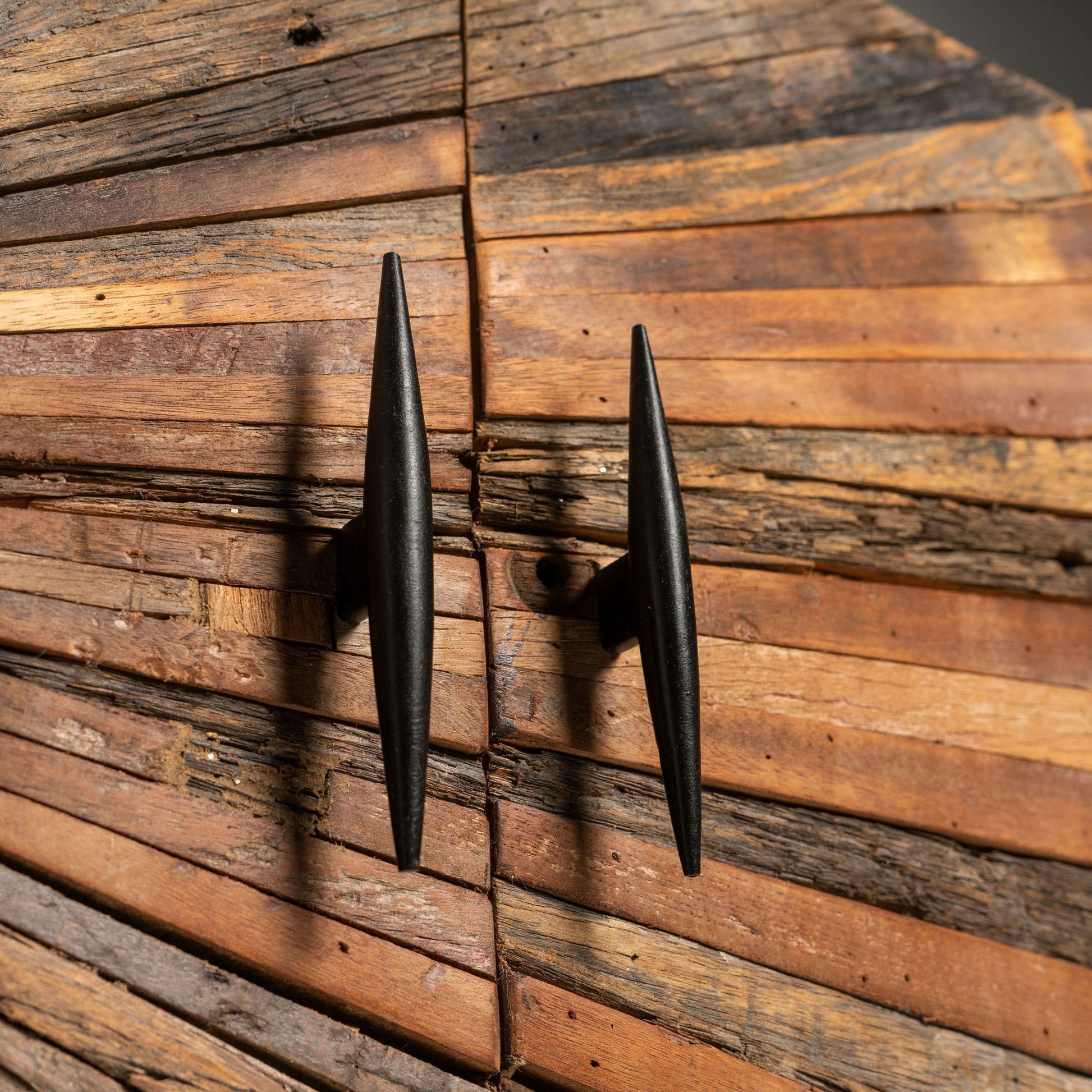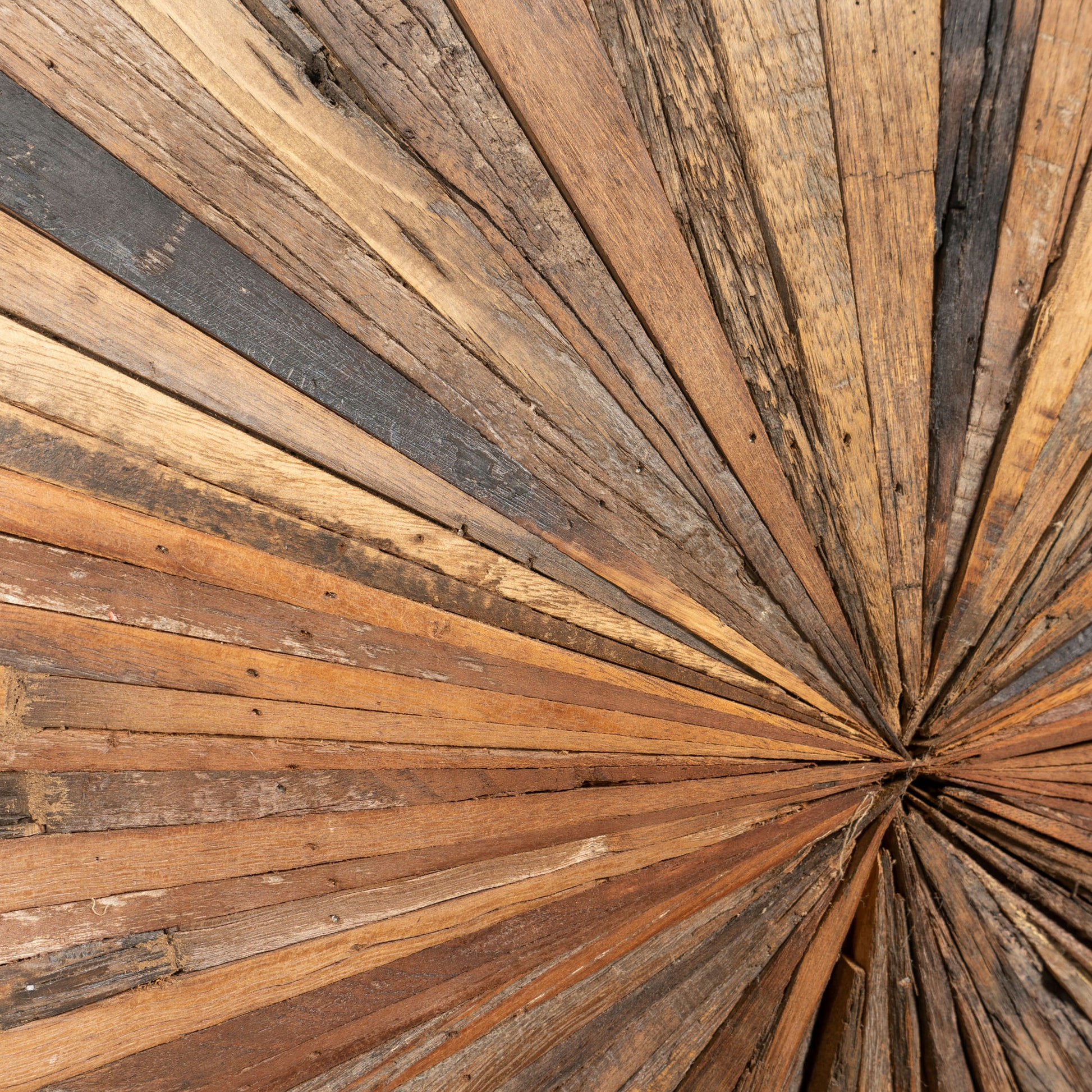 Rejuvenate your space with this rustic yet modern solid wood sideboard. Crafted from reclaimed wood, this sideboard features three cabinet doors showcasing an intricately designed starburst pattern, that offer plenty of storage for all your linens, dishes and more. Beautiful black metal hardware and framed legs complete the look making this a great piece for your dining room, living room or entryway