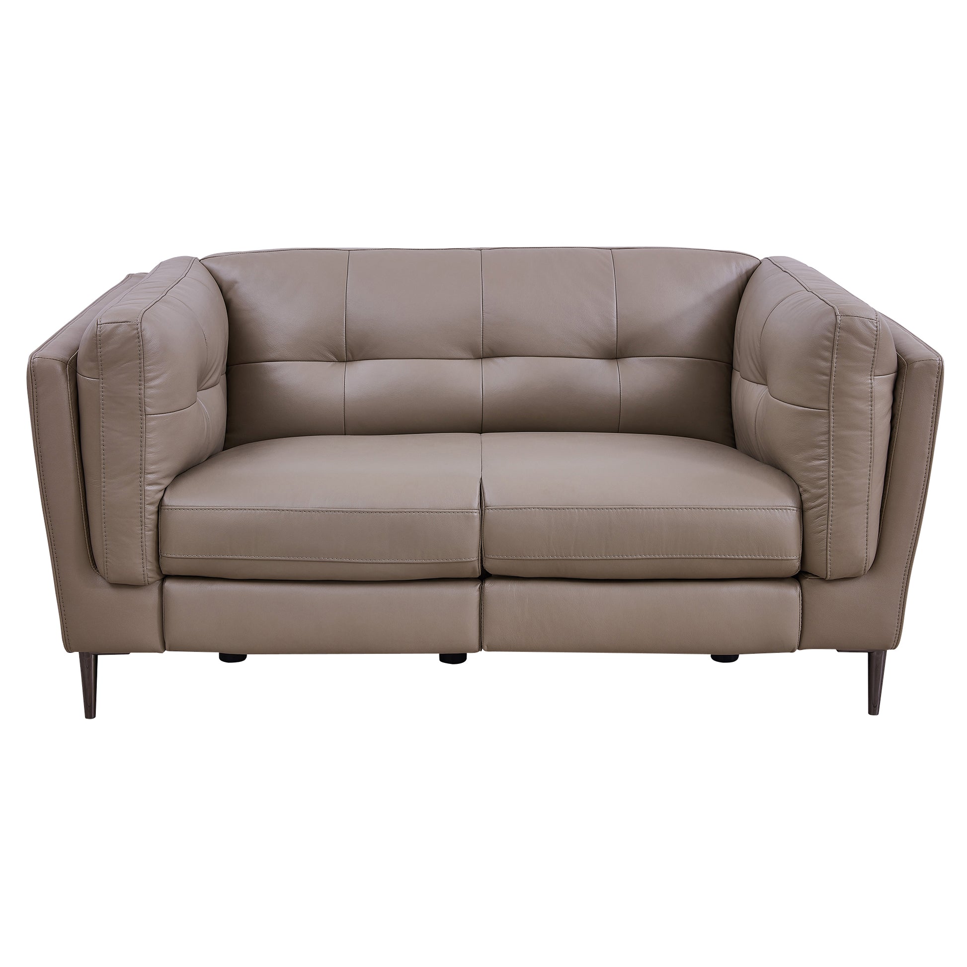 Primrose Contemporary Loveseat in Dark Metal Finish and Greige Genuine Leather