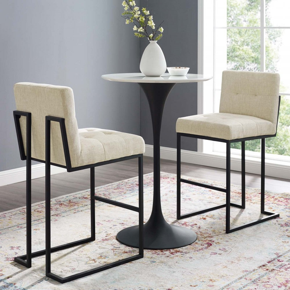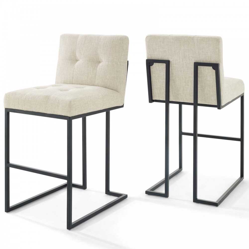 Privy Black Stainless Steel Upholstered Fabric Bar Stool Set of 2, Black Beige
