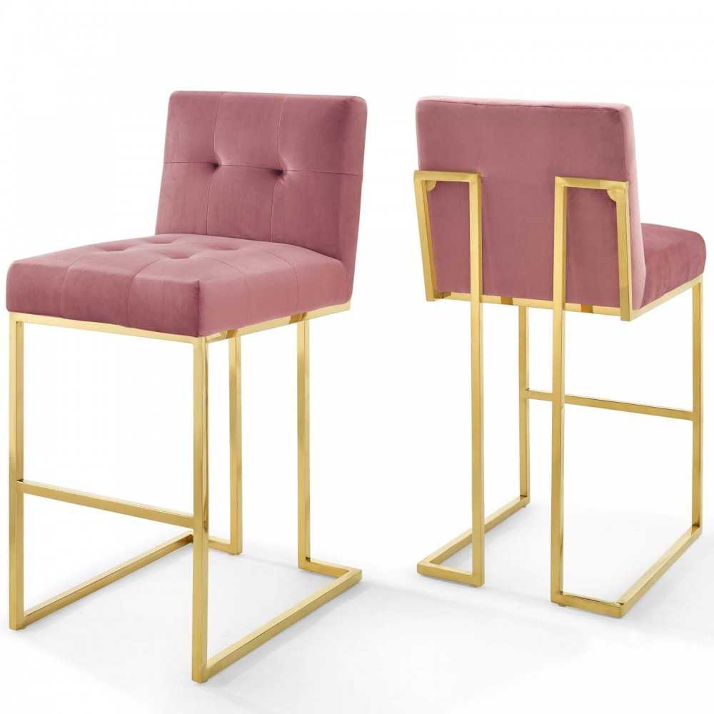 Privy Gold Stainless Steel Performance Velvet Bar Stool Set of 2, Gold Dusty Rose
