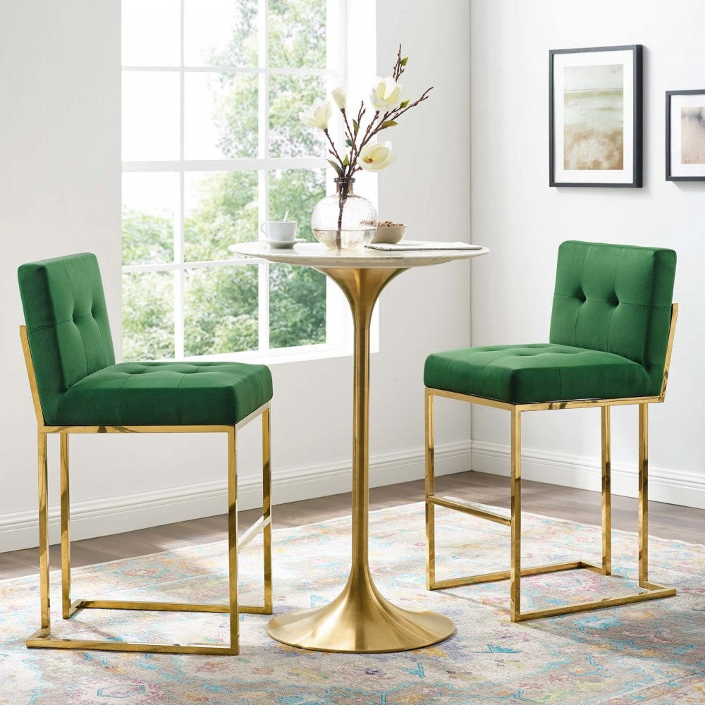 Privy Gold Stainless Steel Performance Velvet Bar Stool Set of 2, Gold Emerald