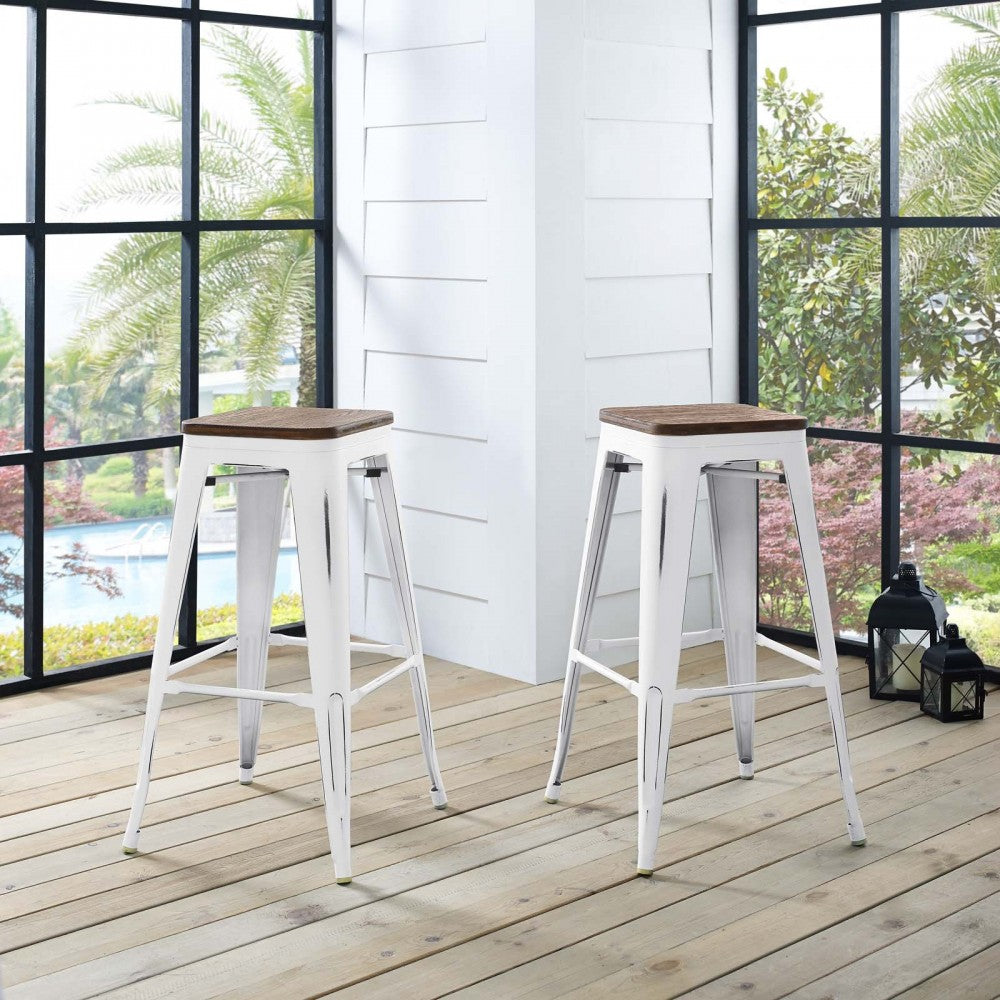 Promenade Bar Stool Set of 2, White, EEI-3956-WHI