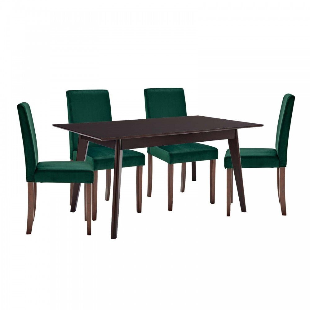 Prosper 5 Piece Upholstered Velvet Dining Set, Cappuccino Green, EEI-4287-CAP-GRN