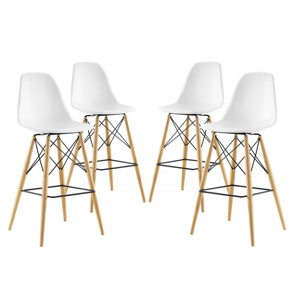 Rarely do we find a piece that stands the test of time like the Wood Pyramid Dining Side Bar Stool. The design was the result of a desire to develop an organically flowing design that advanced the art of creativity. These ambitions thus led to the development of the deep seat pocket, and waterfall seat edge chair, that you see before you. Pyramid is made of a durably molded plastic top and solid wood legs with foot caps to prevent scratching and is perfect for bar seating areas.