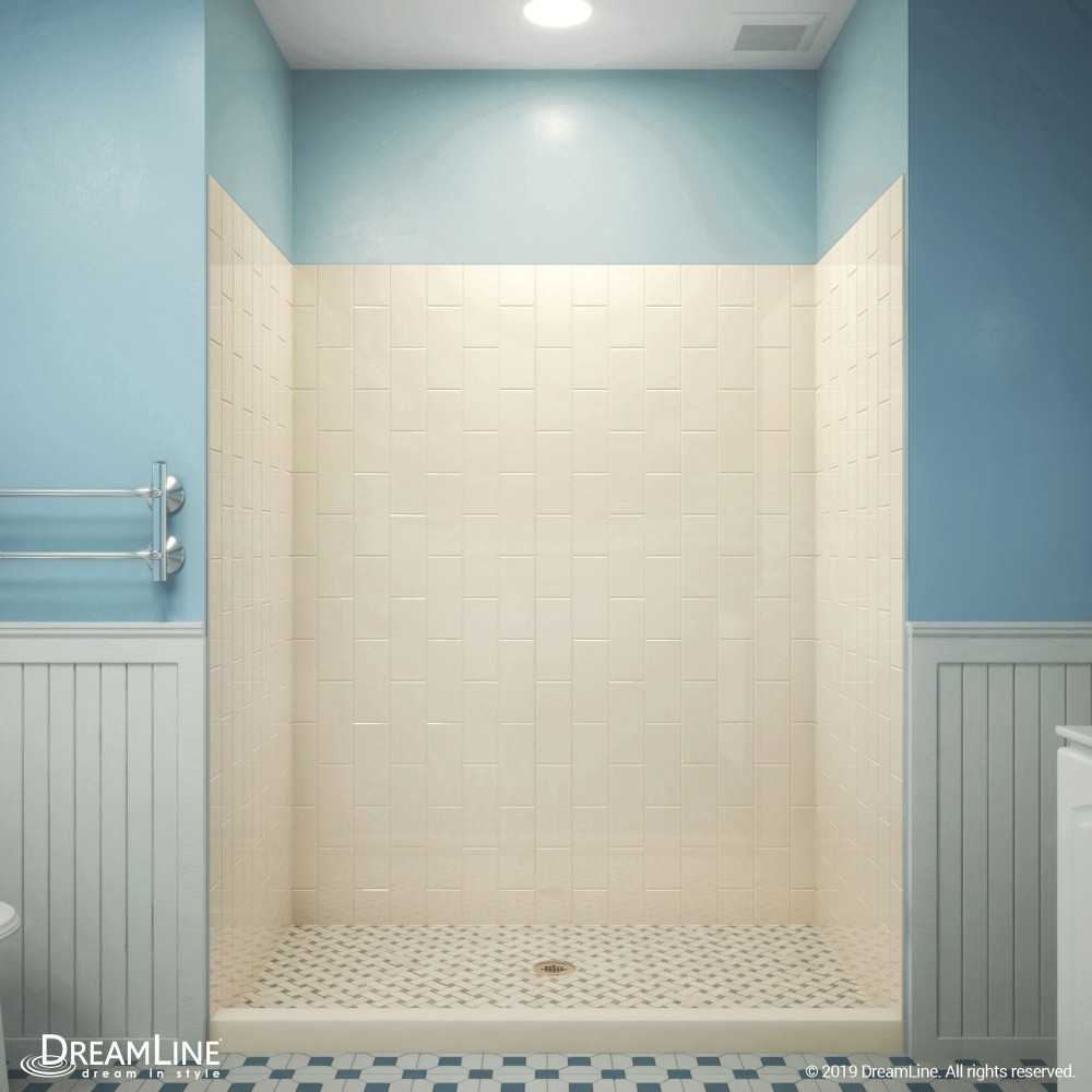 QWALL-VS 56-60 in. W x 41-1/2 in. D x 76 in. H Acrylic Backwall Kit in Biscuit