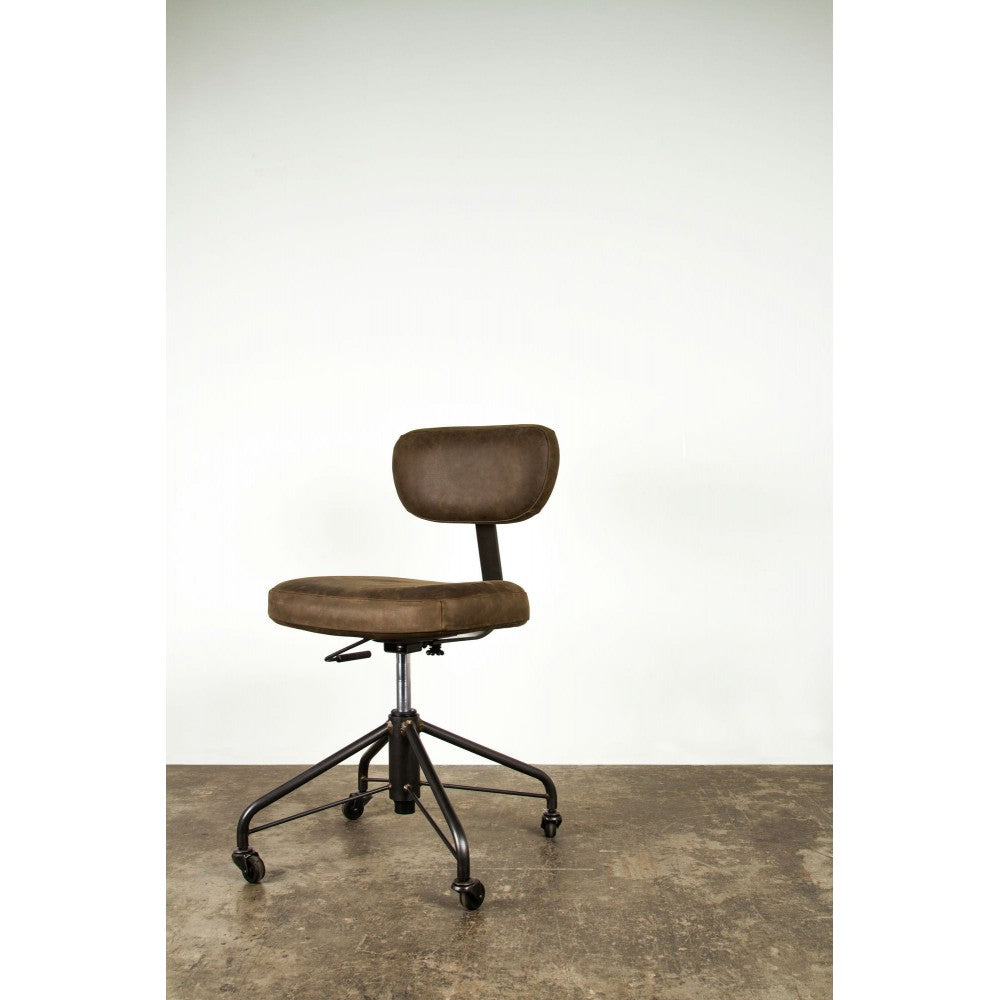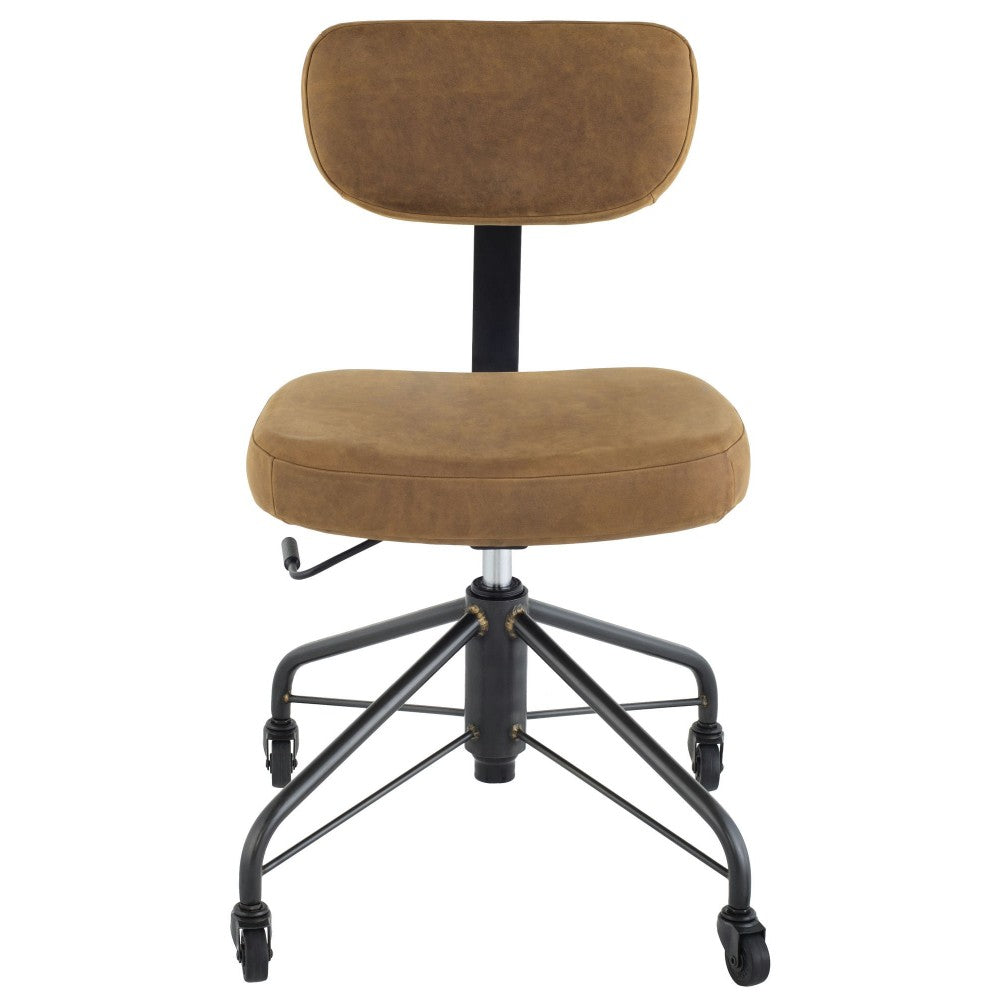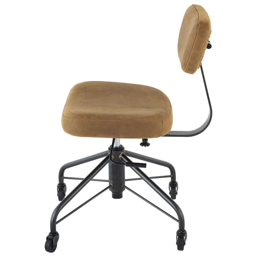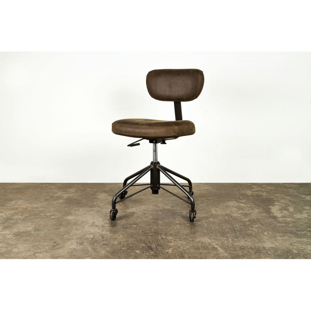 The Rand office chair incorporates the elegant simplicity of industrial era chic with modern comfort and functionalism. Featuring a fully adjustable padded leather seat and backrest and blackened steel frame with castor feet the unique Rand office chair makes a compact and convenient option for small spaces.