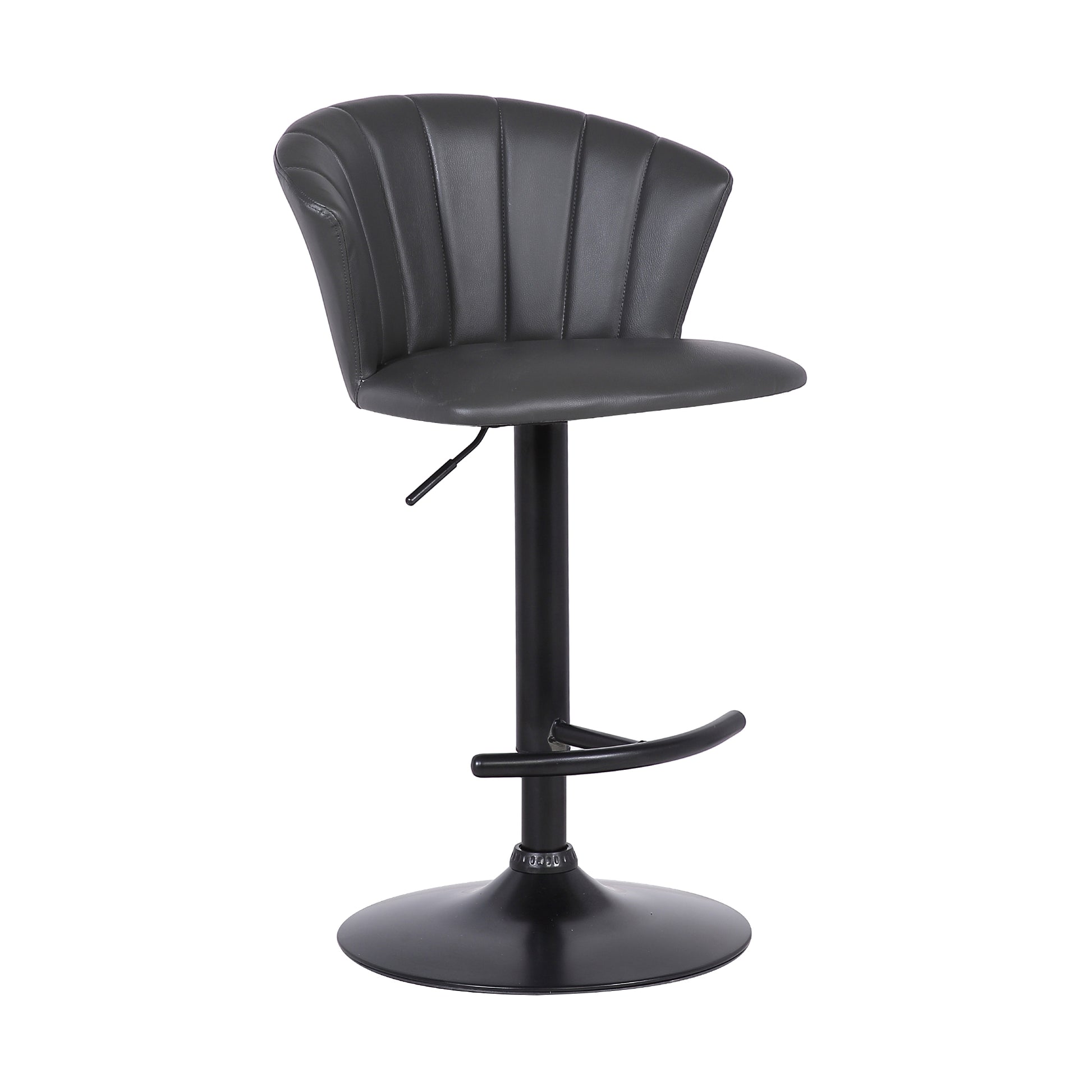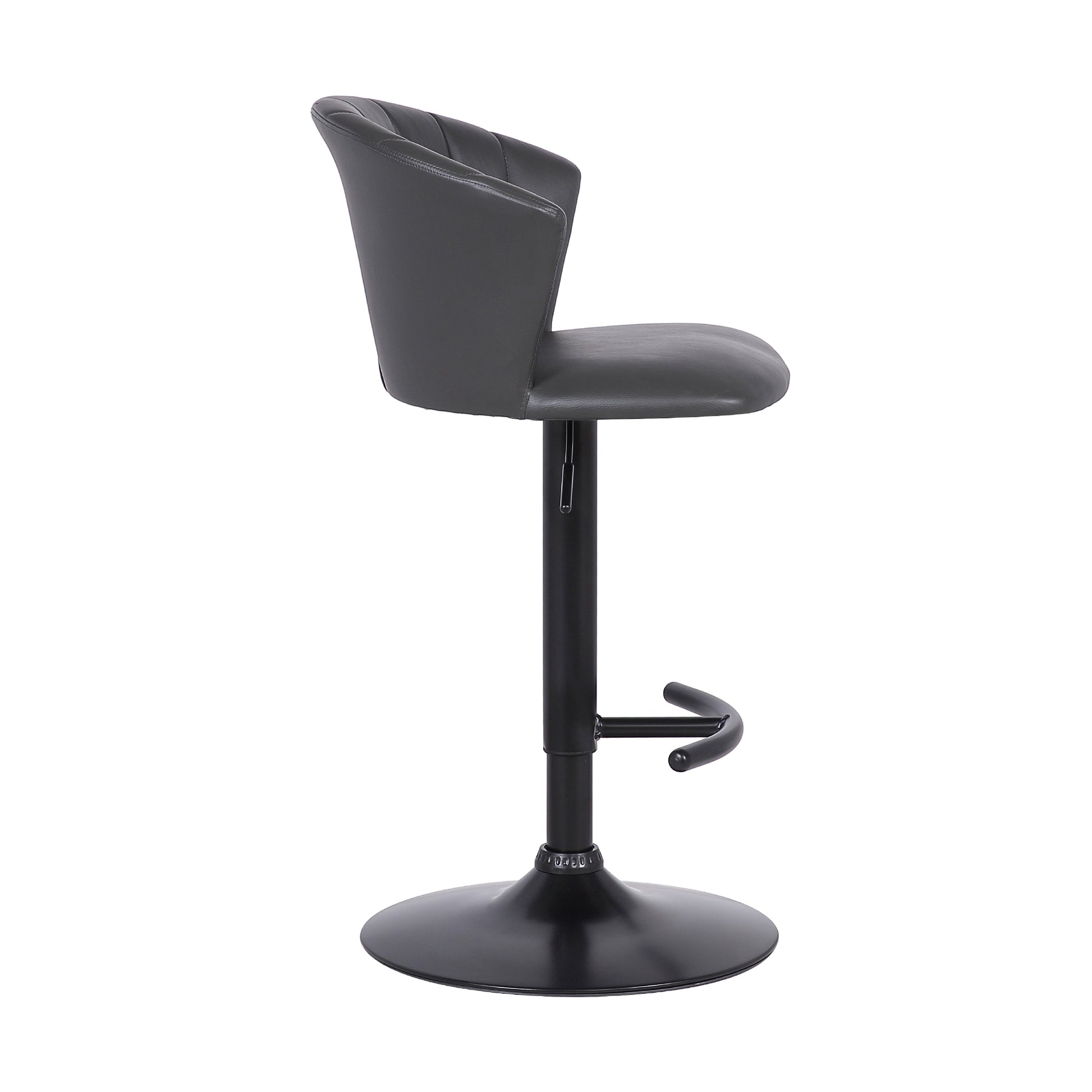 The Raquel Adjustable Modern Gray Faux Leather Bar Stool features an adjustable seat, channel stitching and a beautiful black metal base. This stool fits easily into any modern or contemporary household. The adjustable seat height ranges from 25" to 33" and swivels for optimal convenience.