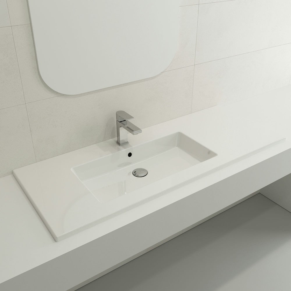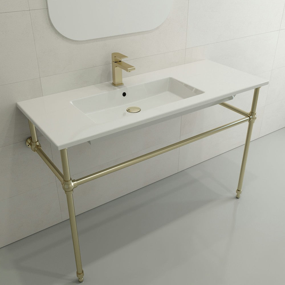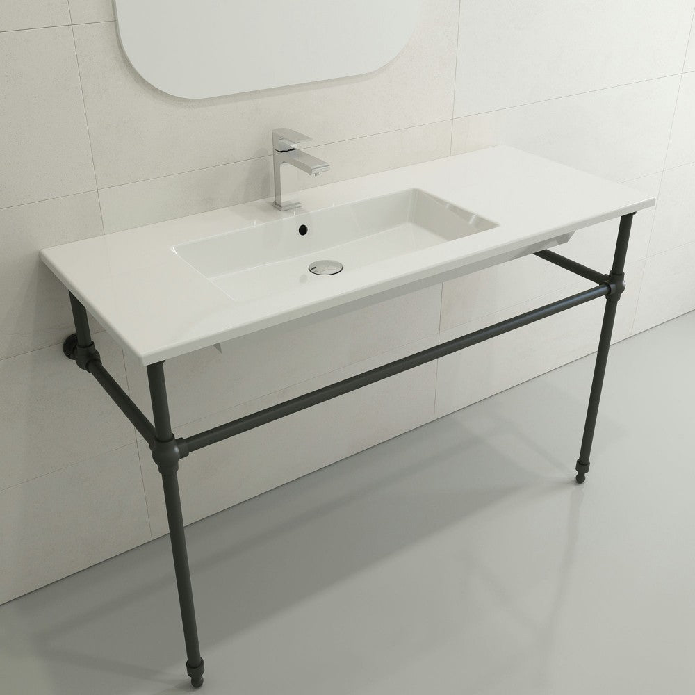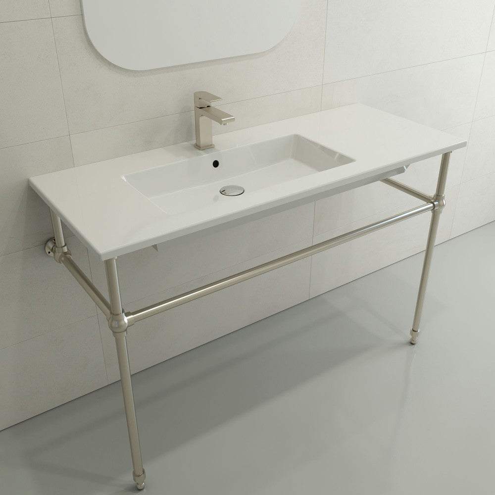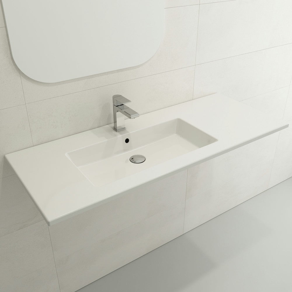 Ravenna 47.50 in. sink with single-hole faucet drilling and slim profile. Symmetrically set basin with counter area on both sides. Made from 100% organic, super durable and non-porous fireclay; available in multiple colors and finishes. May be wall-hung, counter-set, or used with the 3930 0001X Console Leg Set (sold separately).