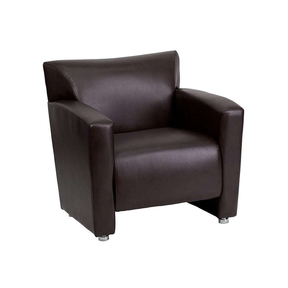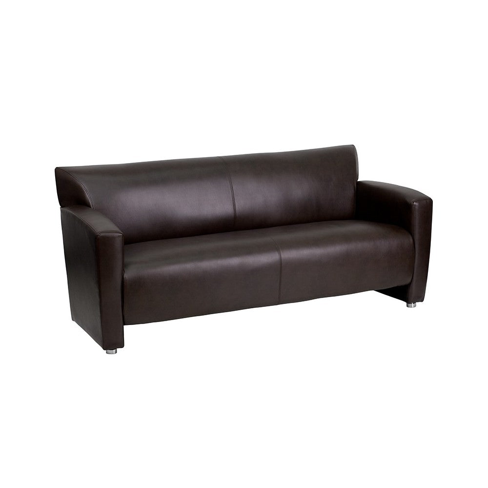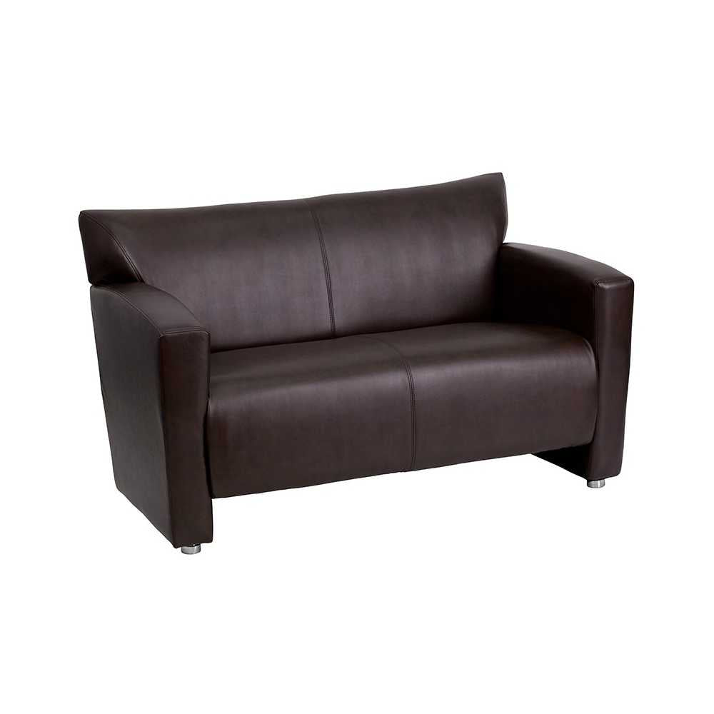 This attractive LeatherSoft reception set will transform your reception area. This set will make an ideal choice in the office and as waiting room seating. The contemporary design of this collection adapts in several different settings. This set features attractive arms and raised aluminum feet. Thanks to a sturdy hardwood frame and brushed aluminum feet, this set is both attractive and durable. Not only will this set fit in a professional environment, but will add a modern look to your home. [222-SET-BN-GG]