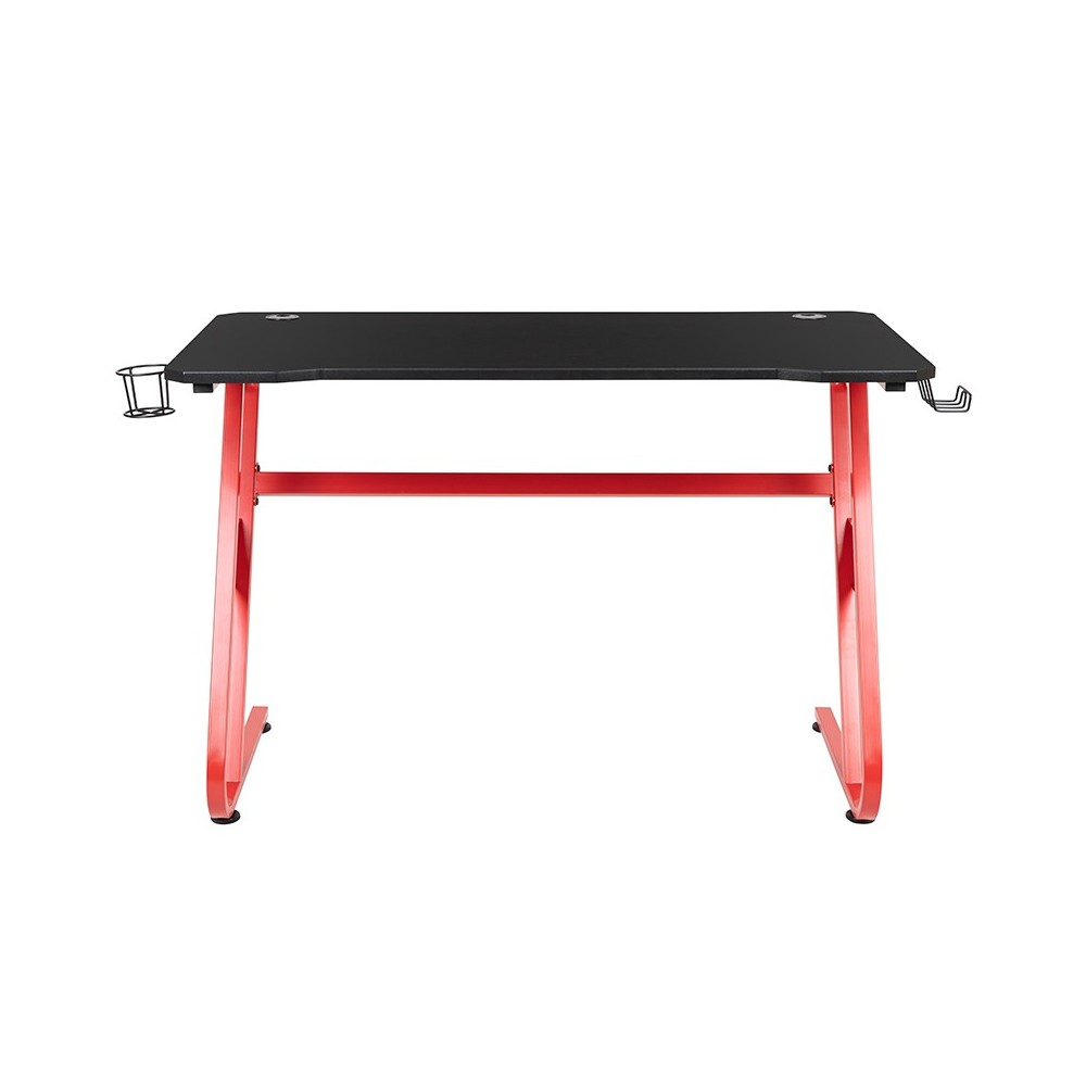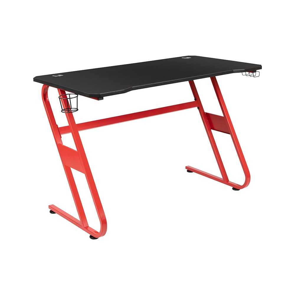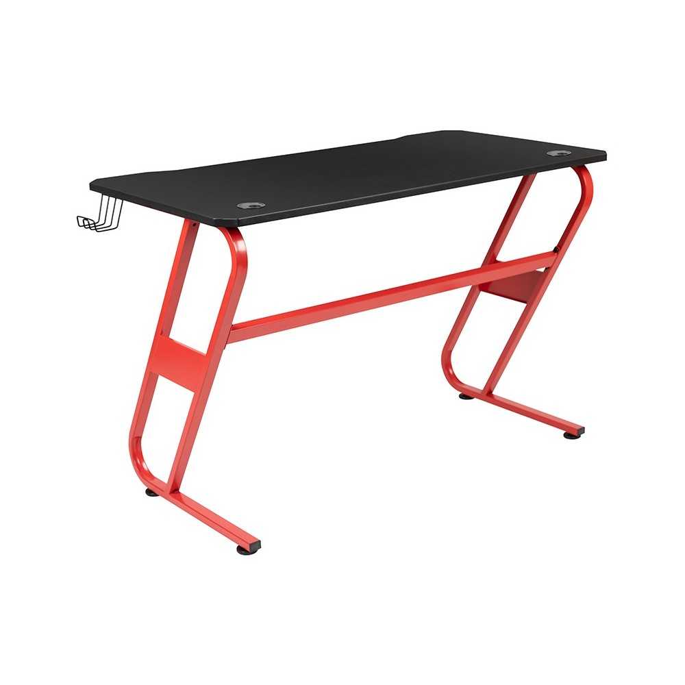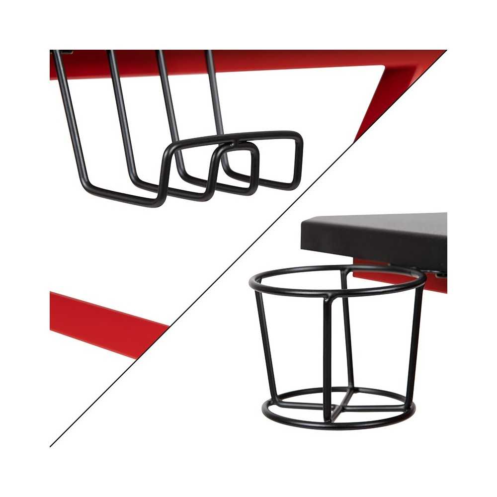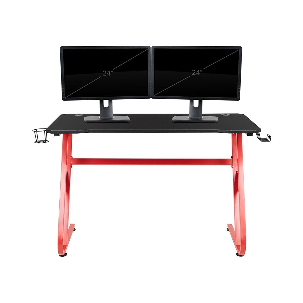 Add personality to your gaming setup with this ergonomic gaming desk with sleek red frame. For excitable players, this game station has a cup holder to prevent accidental spills. For those that game at home or are professional game testers in an office, gaming desks and chairs are essential for daily gamers. The multi-function workstation powers you through game sessions and work demands on a sturdy z-shape frame. Reduce clutter on the worksurface by feeding cords through the two provided grommets. Always know where your headset is by placing on the headset hook in between games. Upgrade the gamer or salesman in your home or office with this computer gaming desk. Complete your gaming setup with our Gaming Chair Racing Office Ergonomic Computer PC Chairs. [NAN-RS-G1030-RD-GG]