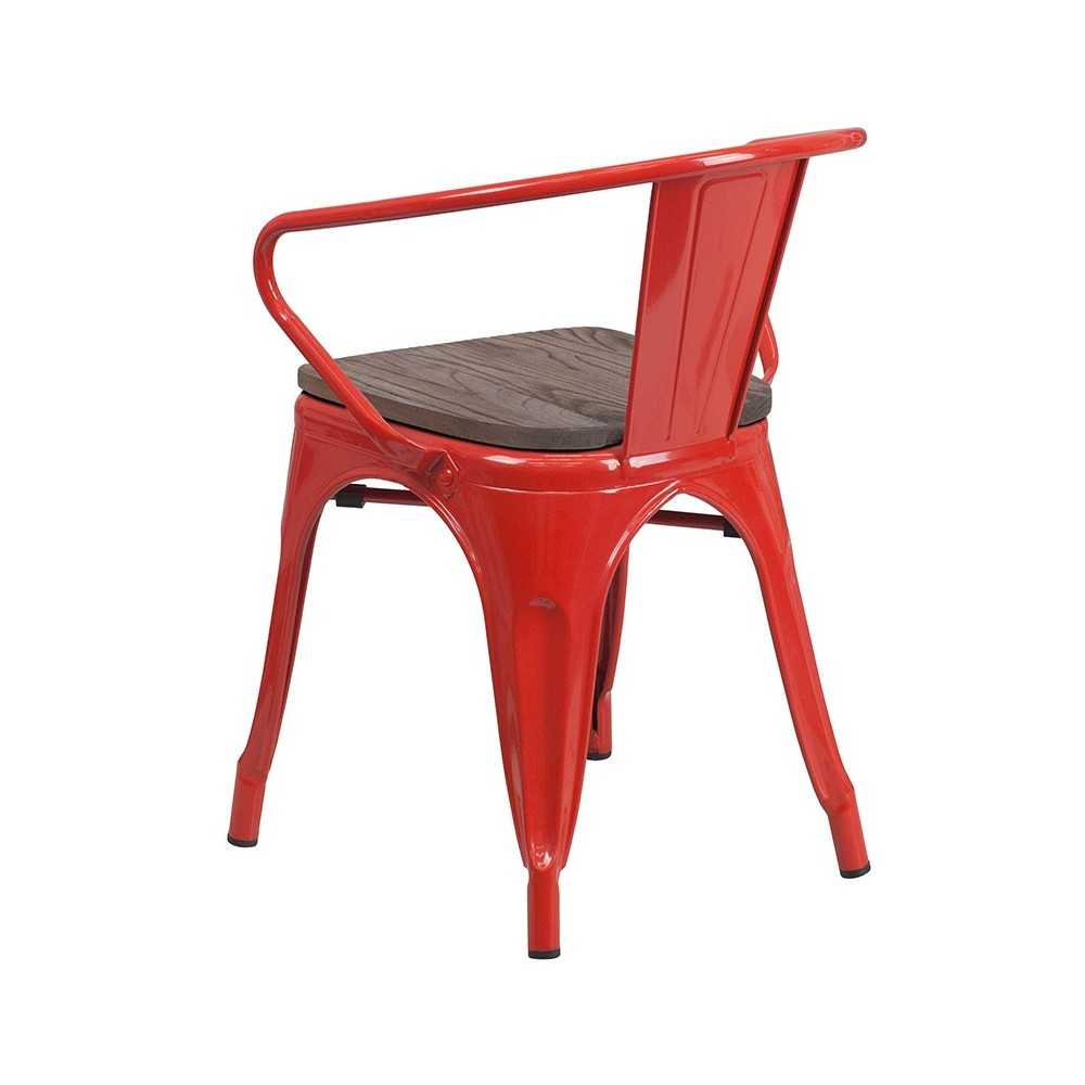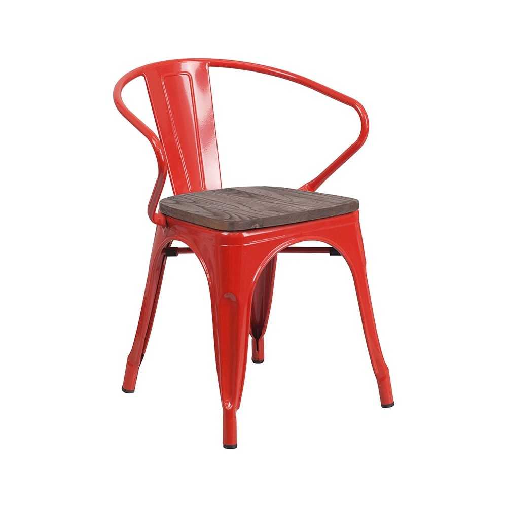 Red Metal Chair with Wood Seat and Arms