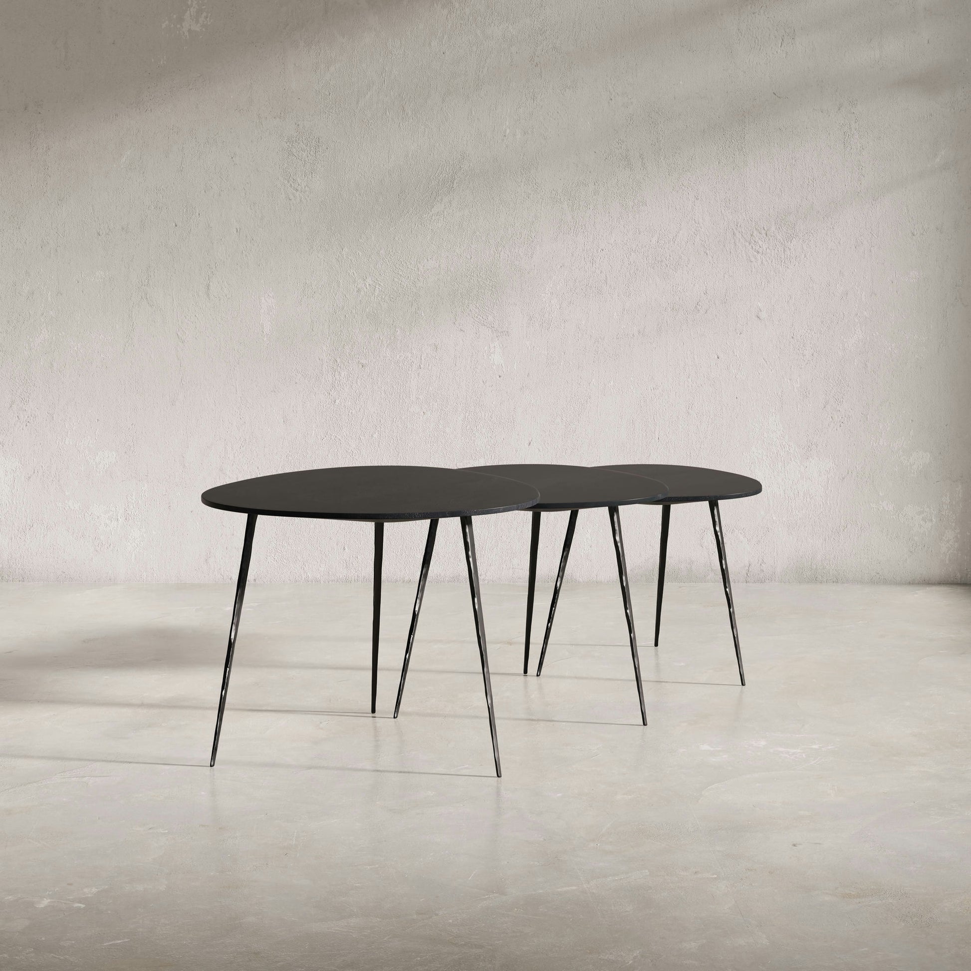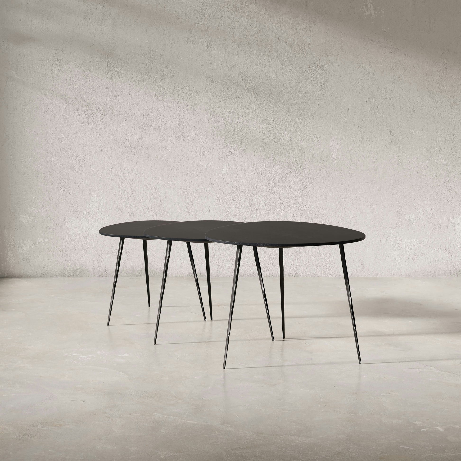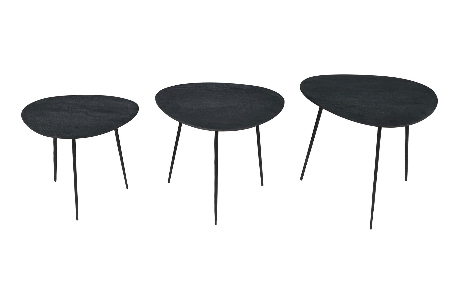 With an abstract rounded corner design, this set of three contemporary end tables neatly fit into each other for easy storage. Liven up your living space with a pop of modern style that matches a wide range of home decor.