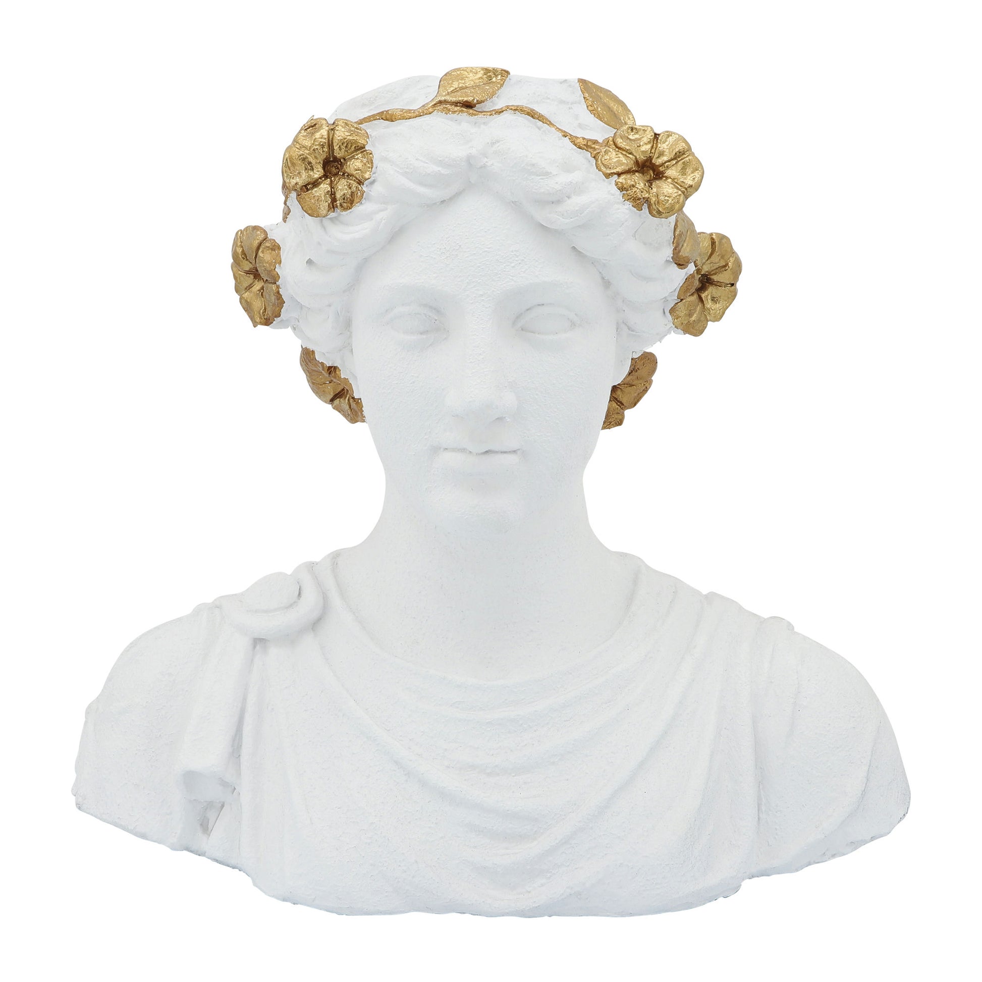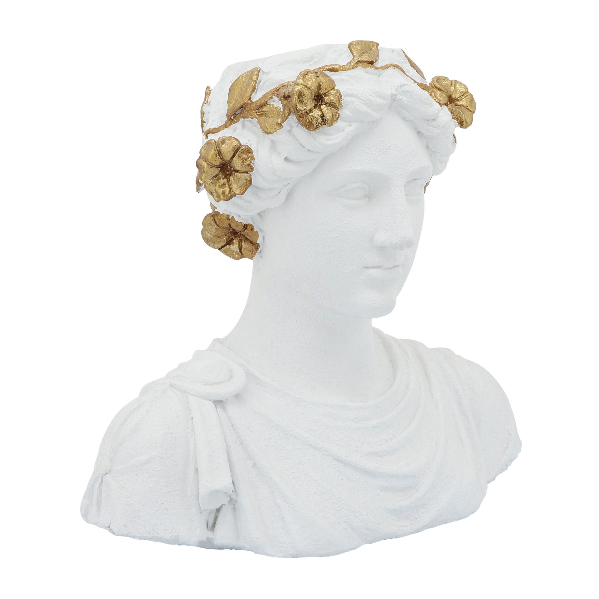 Resin, 15"h Flower Lady Bust Planter, White/gold