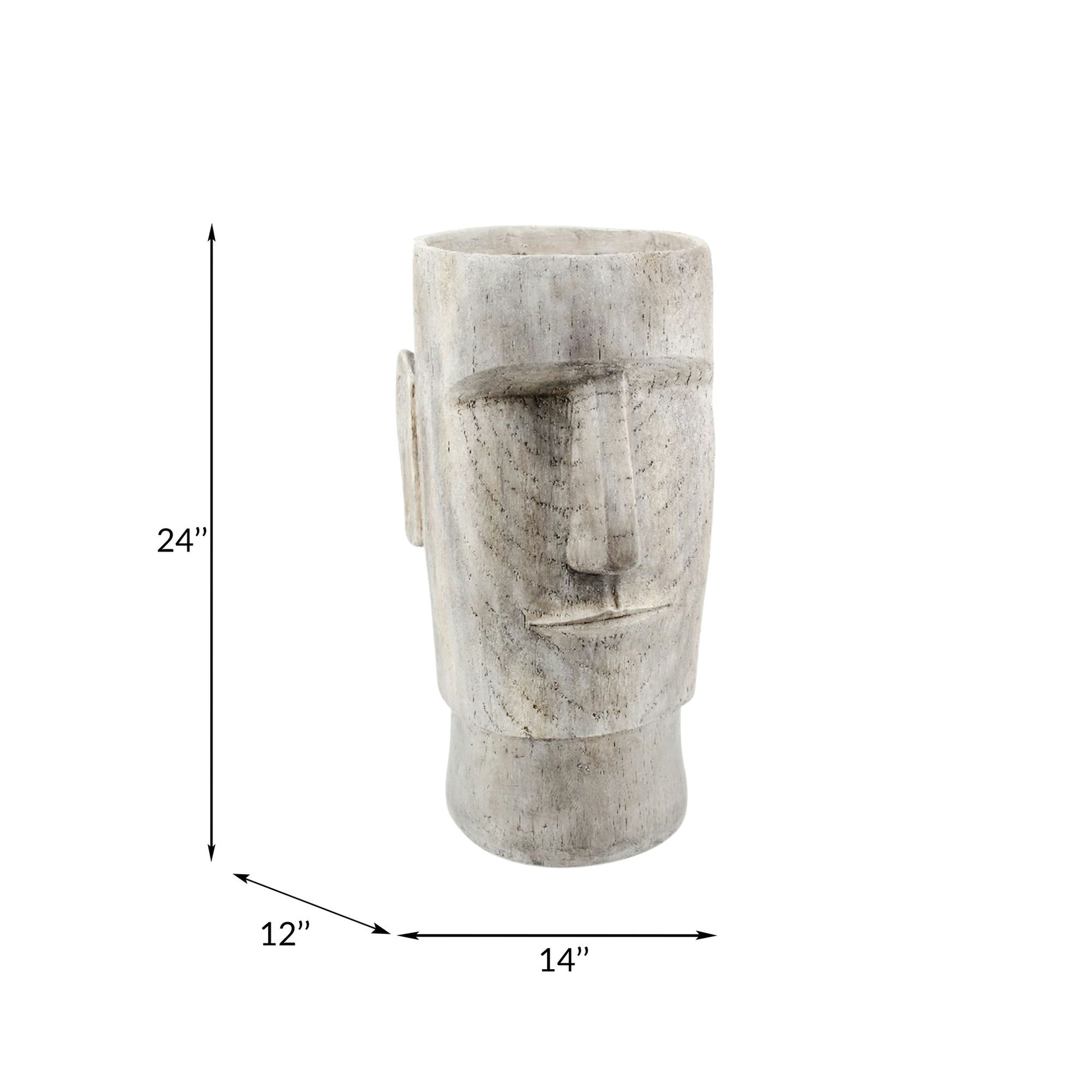 Whether filled with faux florals in the center of your table or solo atop a shelf, this vase always ups the artful appeal of your ensemble. Crafted from resin, finished in a grey hue, easily to create a cohesive look . Features a unique face drawing which gives them a charming artisan look.