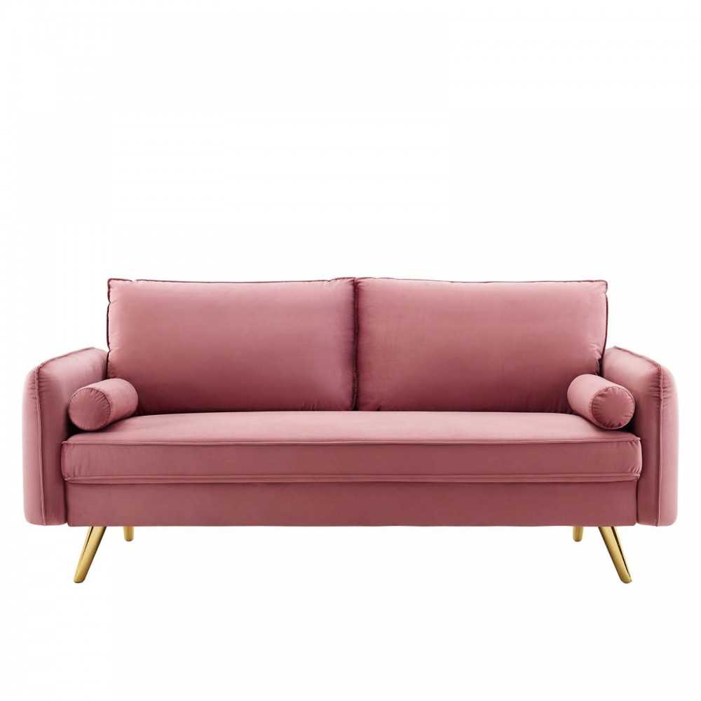 Give new vitality to your home or apartment living space with the Revive Upholstered Performance Velvet Sofa. With a comfortable yet tailored profile and two bolster pillows, this velvet sofa beckons guests to sit and stay a while. Its durable stain-resistant performance velvet upholstery grants this sofa an approachable appeal that"™s echoed by its calming color, clean lines, and splayed gold legs. Arriving directly to your doorstep in a convenient shipping box, this upholstered sofa easily unpacks to quickly become the most well-loved lounge spot in your home. Sofa Weight Capacity: 1323 lbs.