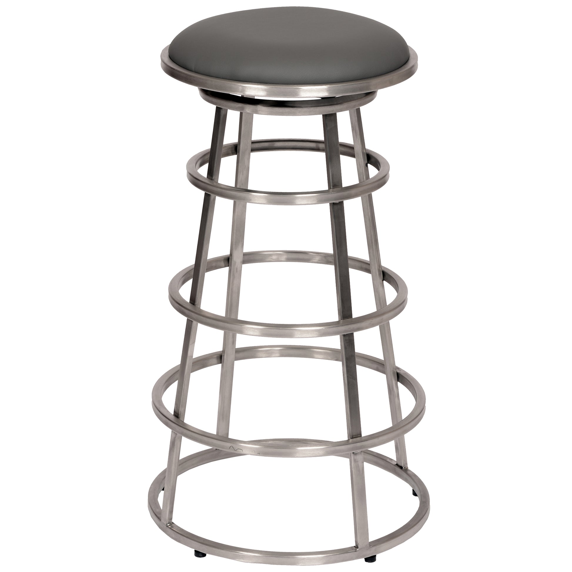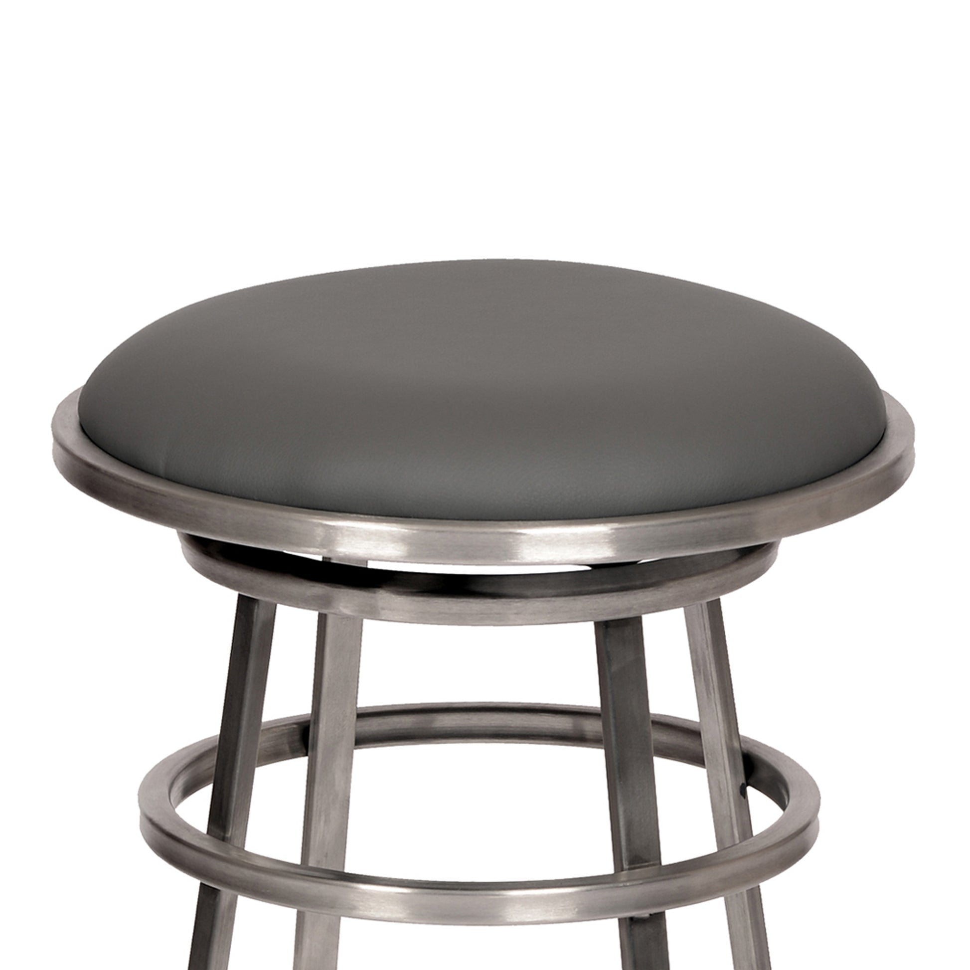 Drawing inspiration from geometry, the Ringo contemporary backless barstool offers a modern update to your home. The frame is sturdily finished in brushed stainless steel and comfortably padded with foam cushioning upholstered in Gray Pu. Modern barstool makes a wonderful addition or replacement to any home. It can be used anywhere in your modern home, including in your dining or living room.