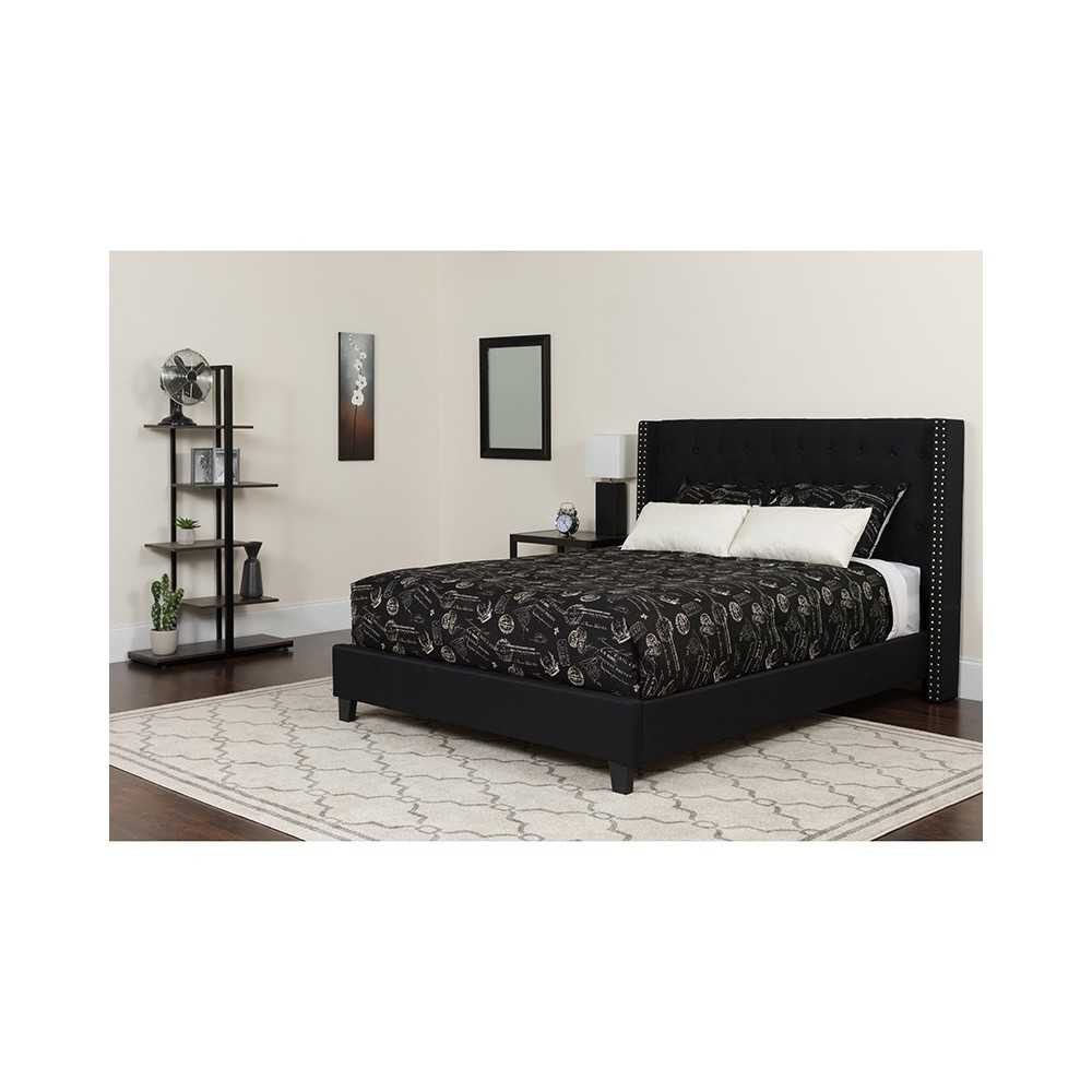 Riverdale King Size Tufted Upholstered Platform Bed in Black Fabric with Pocket Spring Mattress