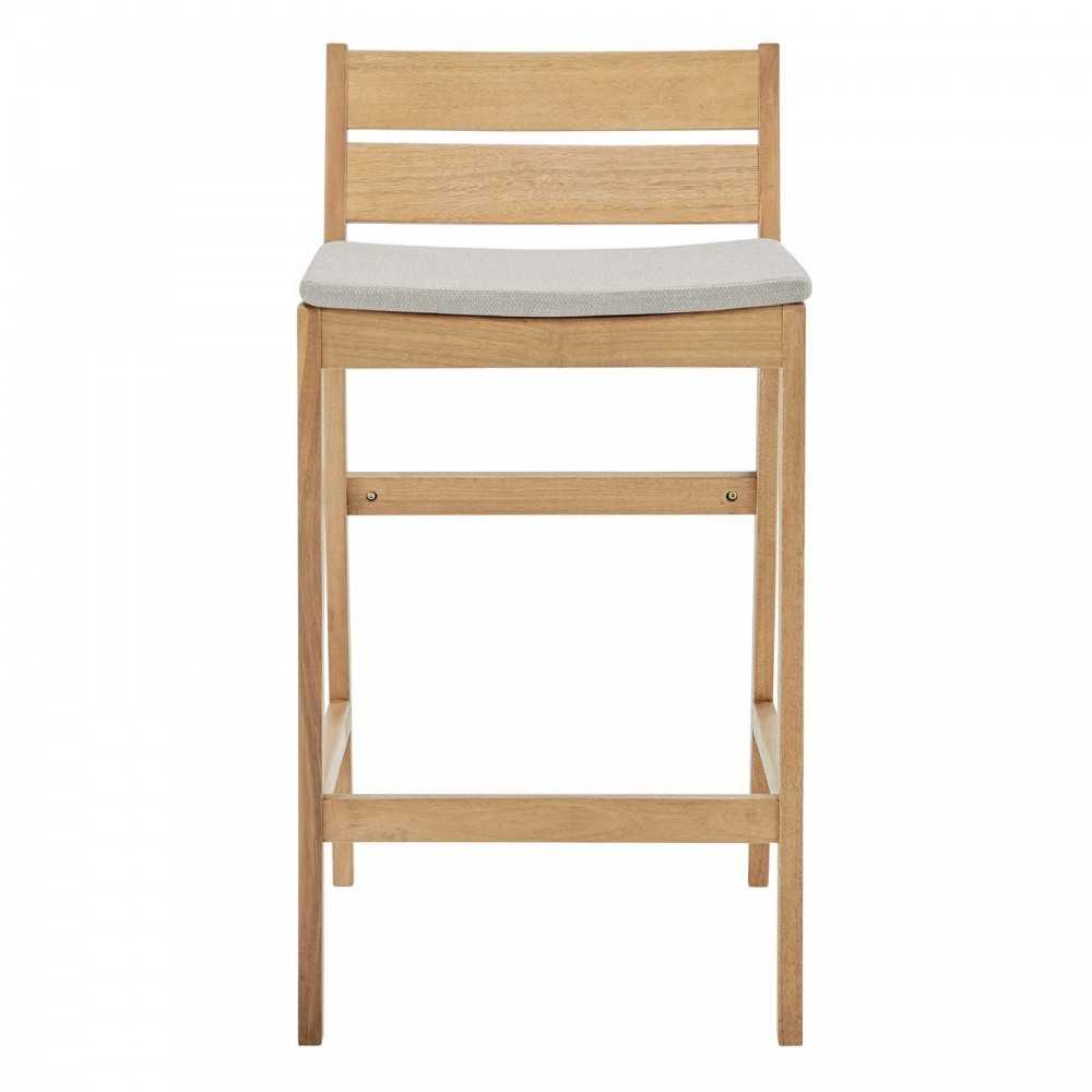 Refresh your outdoor decor with the sleek Riverlake Outdoor Patio Wood Counter Stool. Crisp lines and a breathable slatted back define this solidly constructed FSC certified ash wood counter stool. This outdoor counter stool has an all-weather removable cushion for easy cleaning. Complete with ribbons to secure the counter stool cushion onto the seat base, create a stylish gathering spot with this modern ash wood counter stool. Perfect for the patio, deck, porch, or poolside. Counter Stool Weight Capacity: 331 lbs.