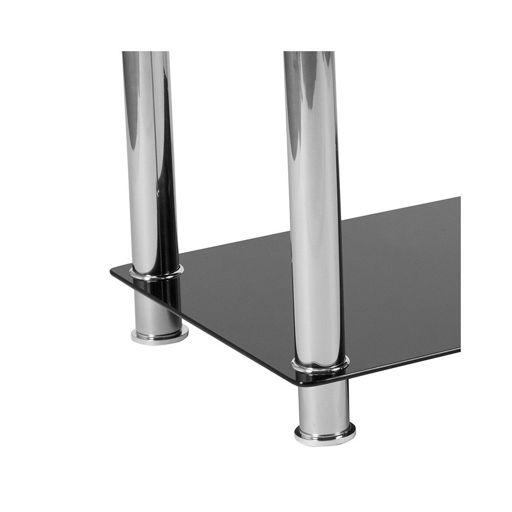 Riverside Collection Black Glass Coffee Table with Shelves and Stainless Steel Frame