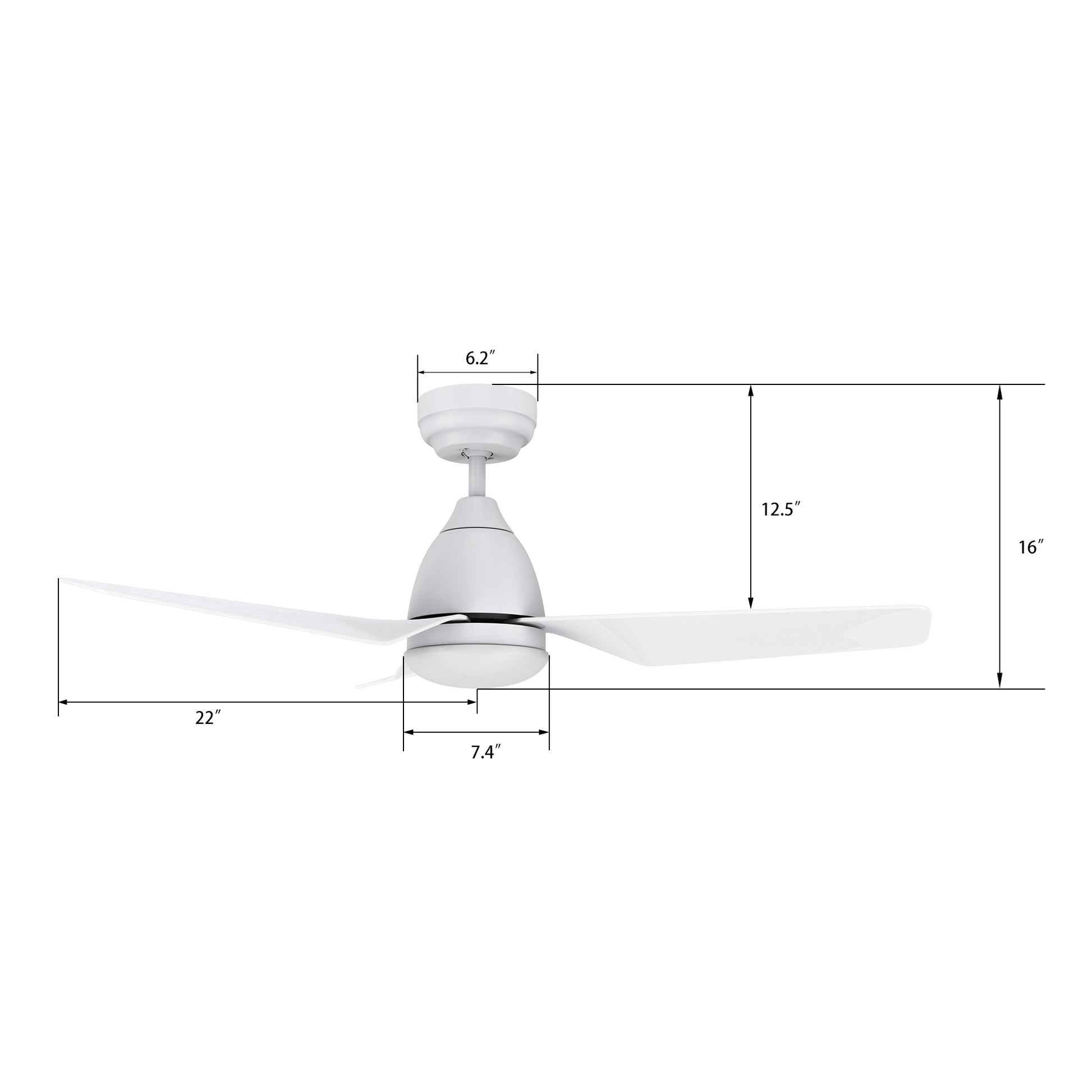Roque 44 Inch 3-Blade Smart Ceiling Fan - White