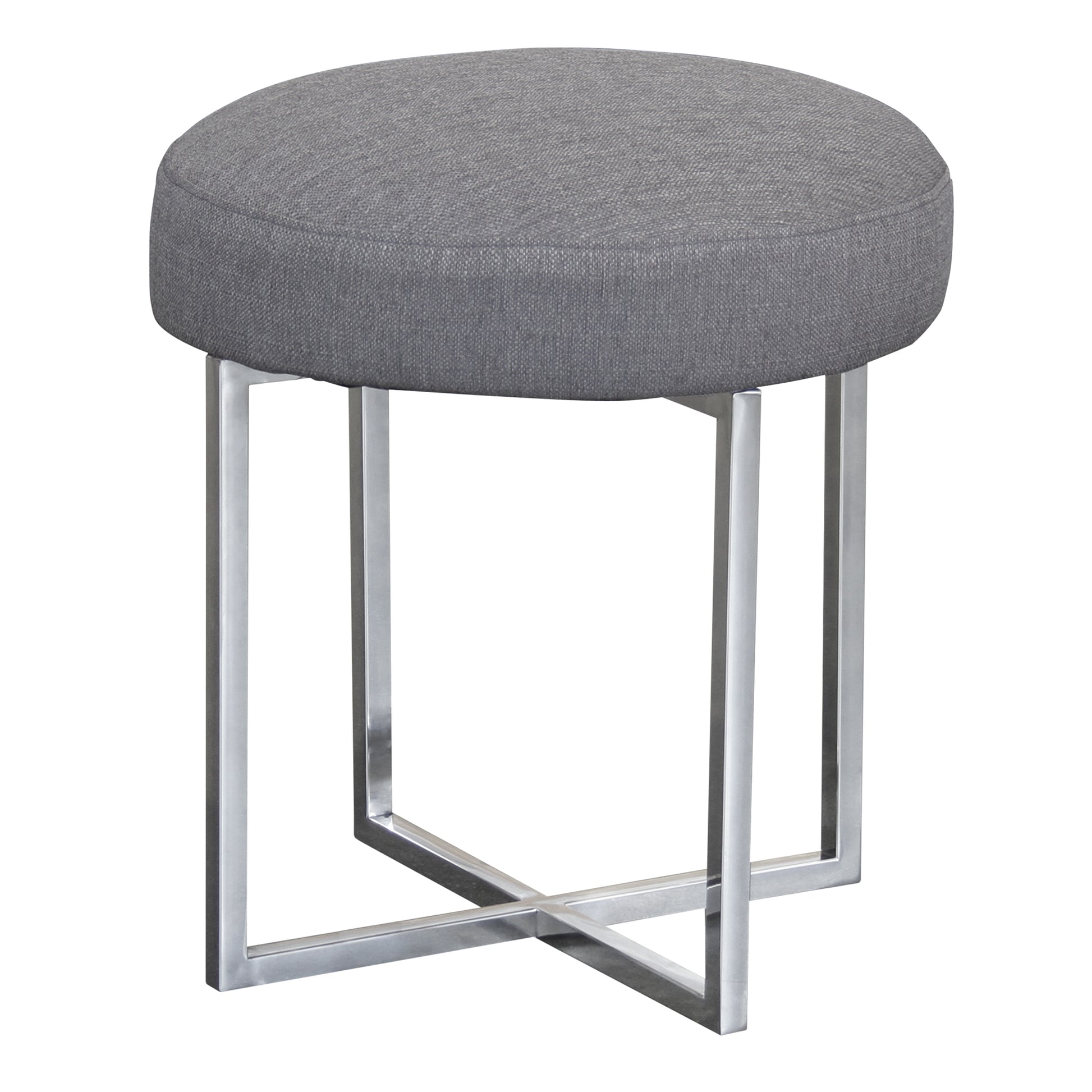 Rory Ottoman in Polished Stainless Steel Finish Base and Gray Fabric