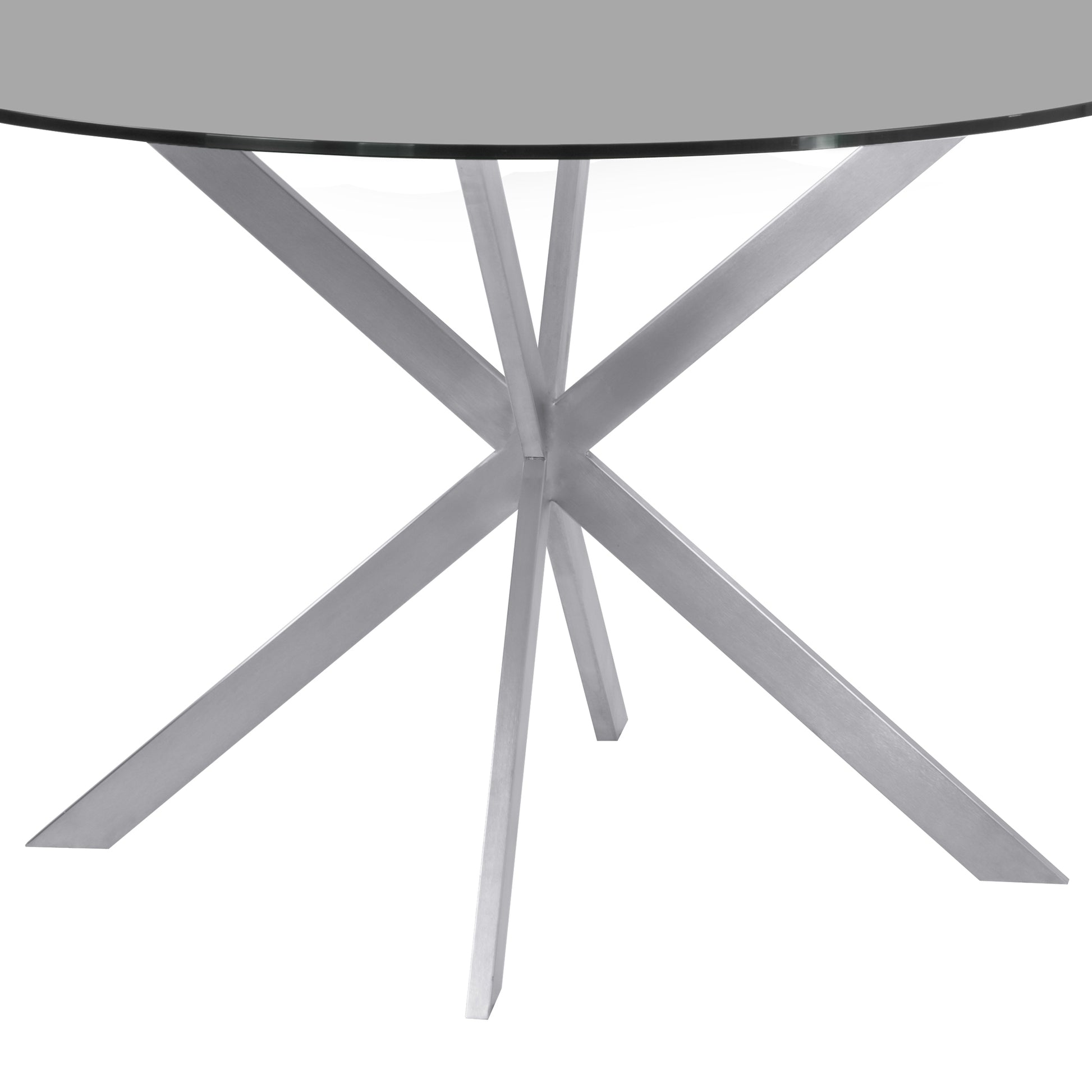 The Armen Living Mystere contemporary dining table combines a beautiful four sided, cross-leg brushed stainless steel design with an exquisite glass top. The modern design of the Mystere is chic and can serve as a wonderful addition to any dining room or function well in just about any other room of the house.