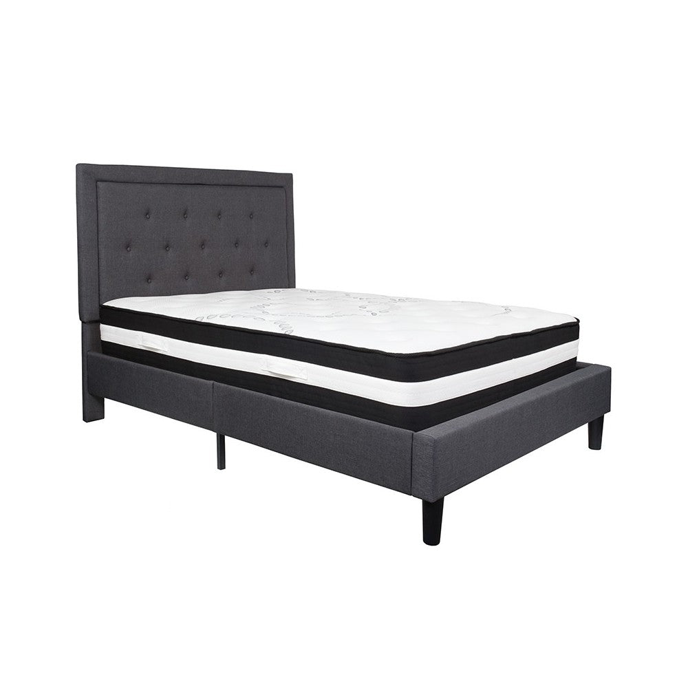 Roxbury Full Size Tufted Upholstered Platform Bed in Dark Gray Fabric with Pocket Spring Mattress