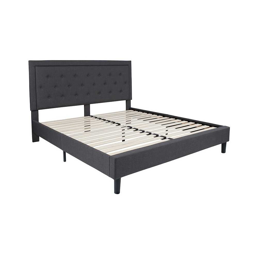 Roxbury King Size Tufted Upholstered Platform Bed in Dark Gray Fabric