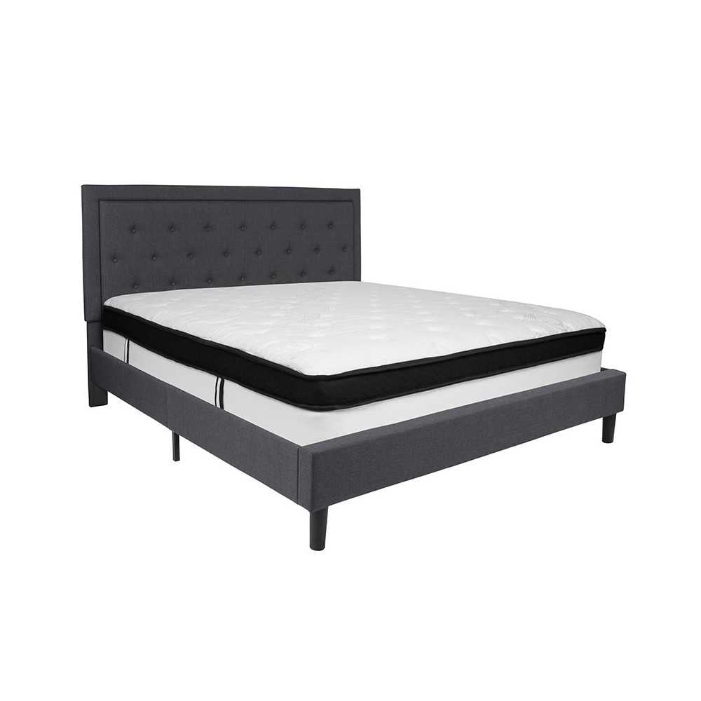 Roxbury King Size Tufted Upholstered Platform Bed in Dark Gray Fabric with Memory Foam Mattress