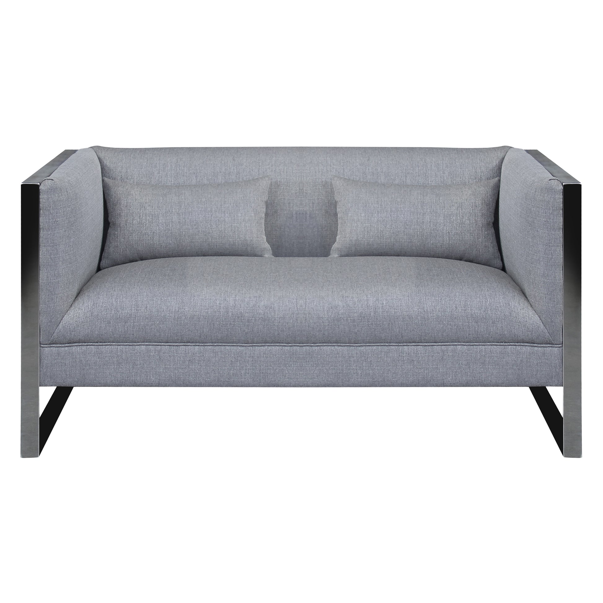 - Royce Modern Polished Stainless Steel And Gray Fabric Loveseat