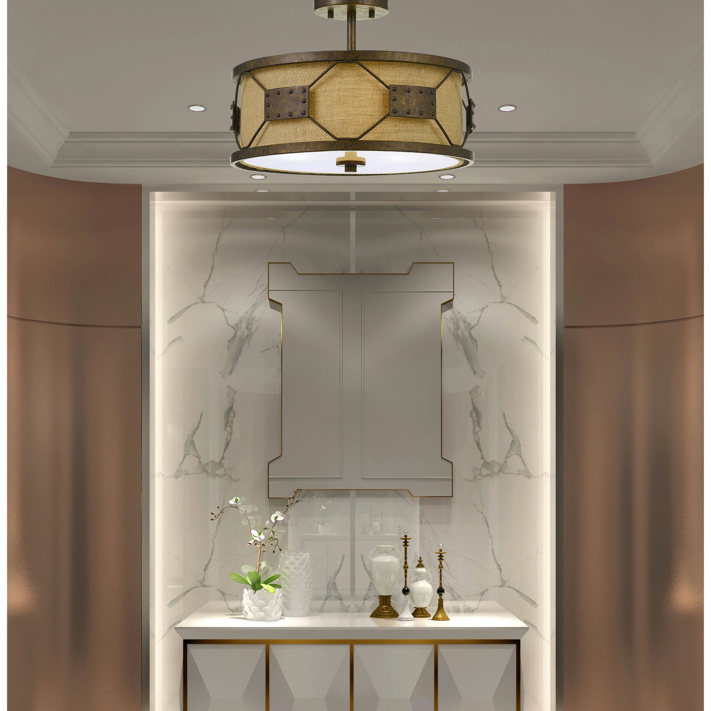 60w x 3 ragusa metal 2 in 1 pendant/semi flush mount fixture with burlap shade