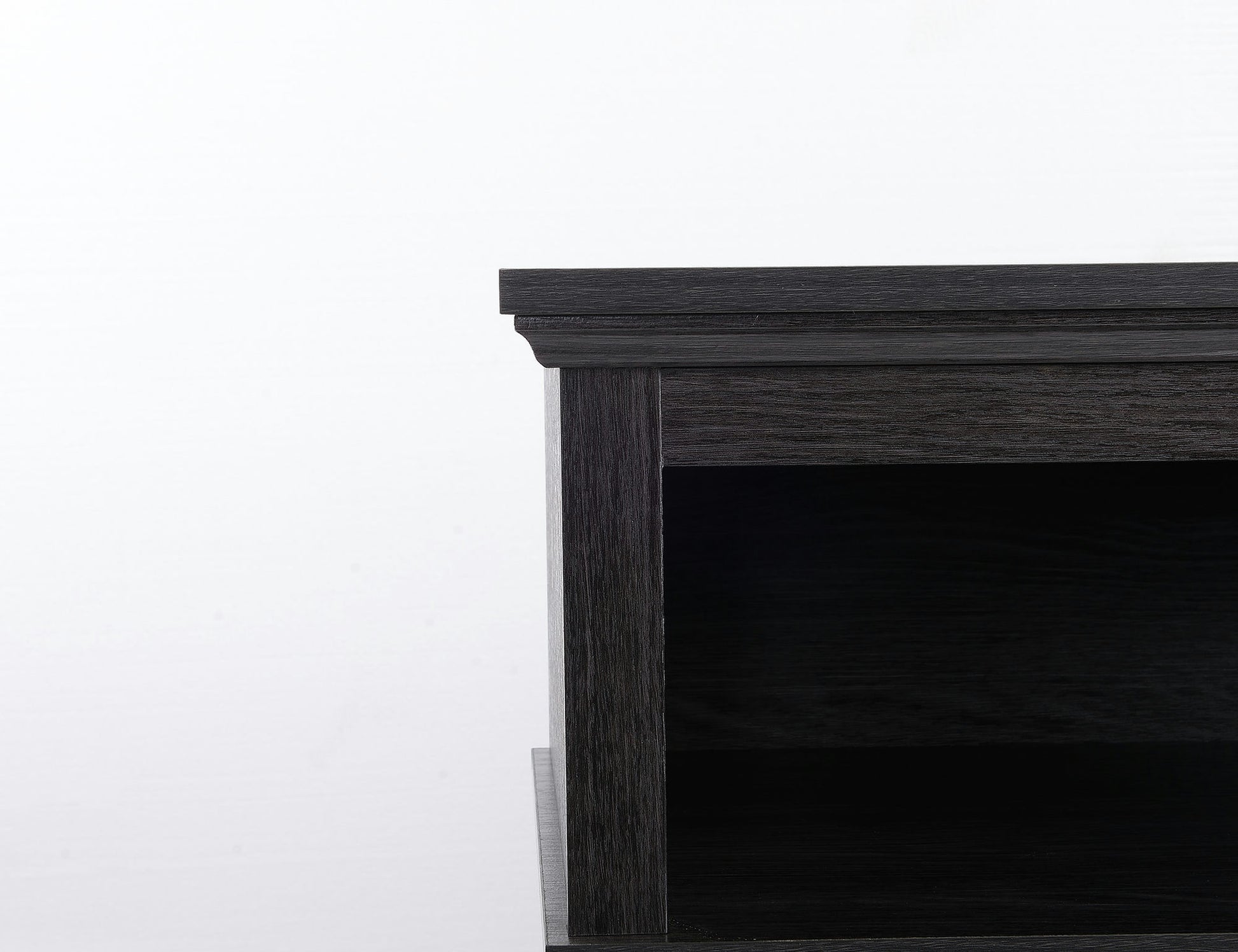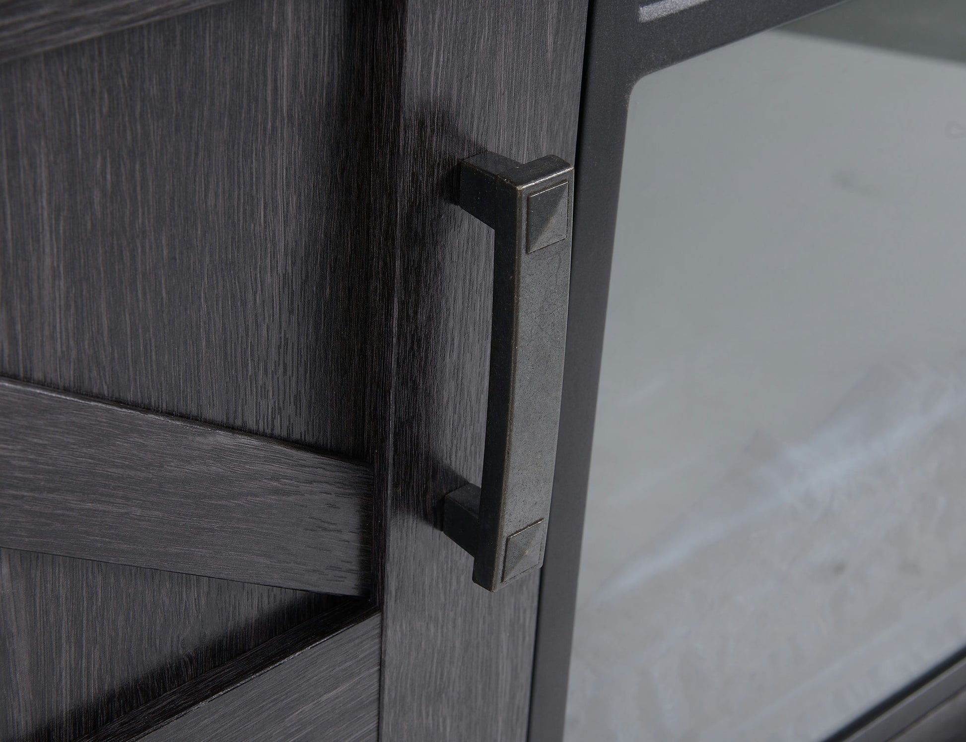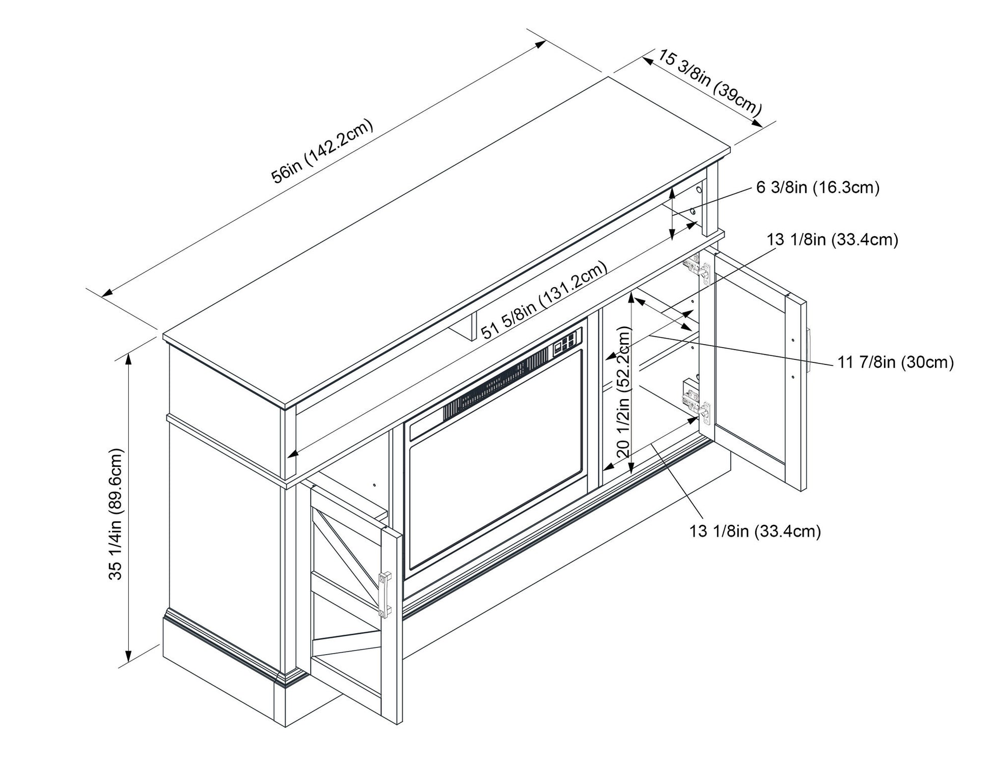 This classic style media console is perfect for any room. The rough cut barnwood style doors give this unit a custom made look while the dark finish helps this fit with most room décor. The built in electric fireplace is perfect for adding a romantic feel to the room and providing an additional heating source.