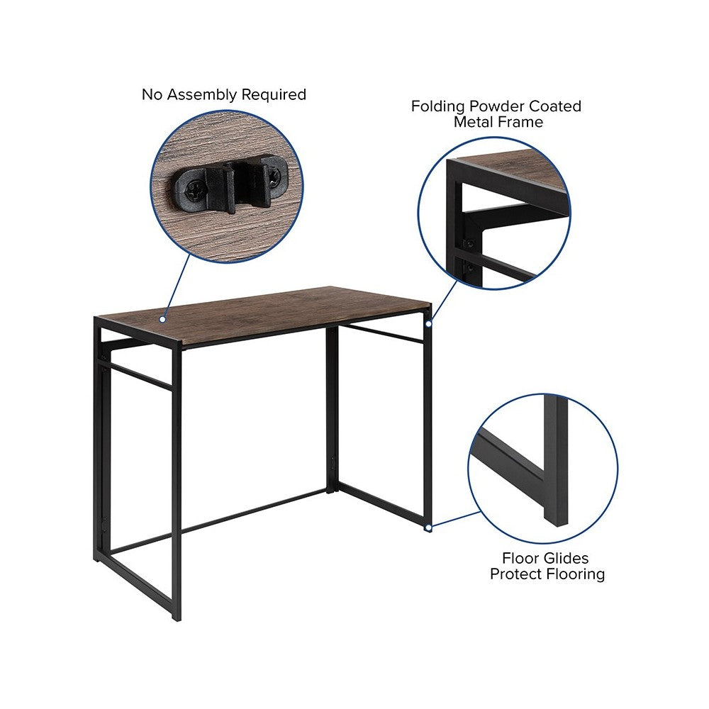Get into a normal work from home routine by setting up a dedicated office space to perform your work duties instead of the dining room table. When you need something simple and functional this folding computer desk is at your service. Setup your desktop or use as a laptop table. If you're short on space this foldable desk folds to 2.25" depth to store behind your sofa. Create a school environment at home for your remote learning student. This student desk can be used in the home or dorm room. No assembly required to get you working faster. The industrial style desk can be your all-in-one creative space for work, play and meals. [JB-YJ354F-GG]
