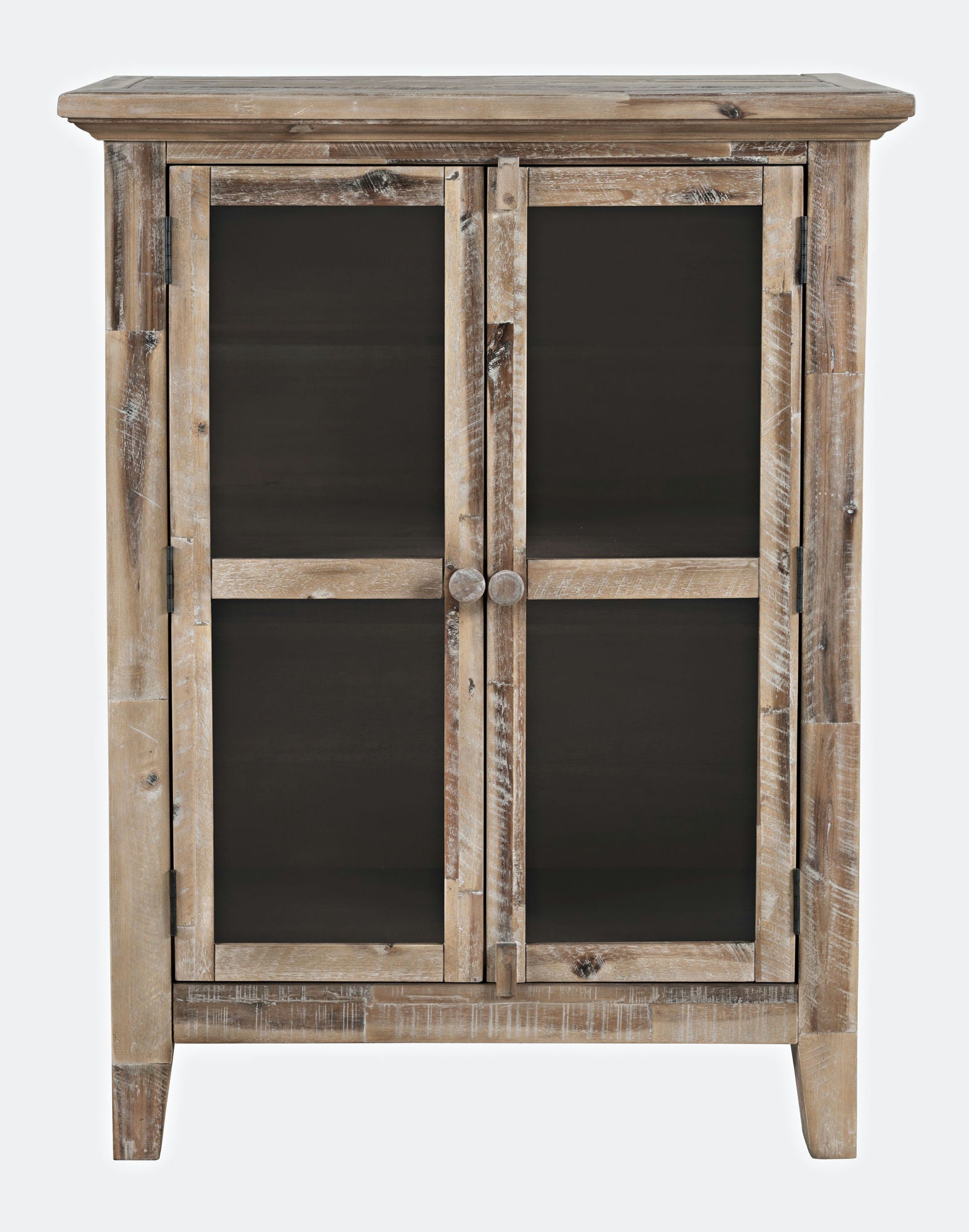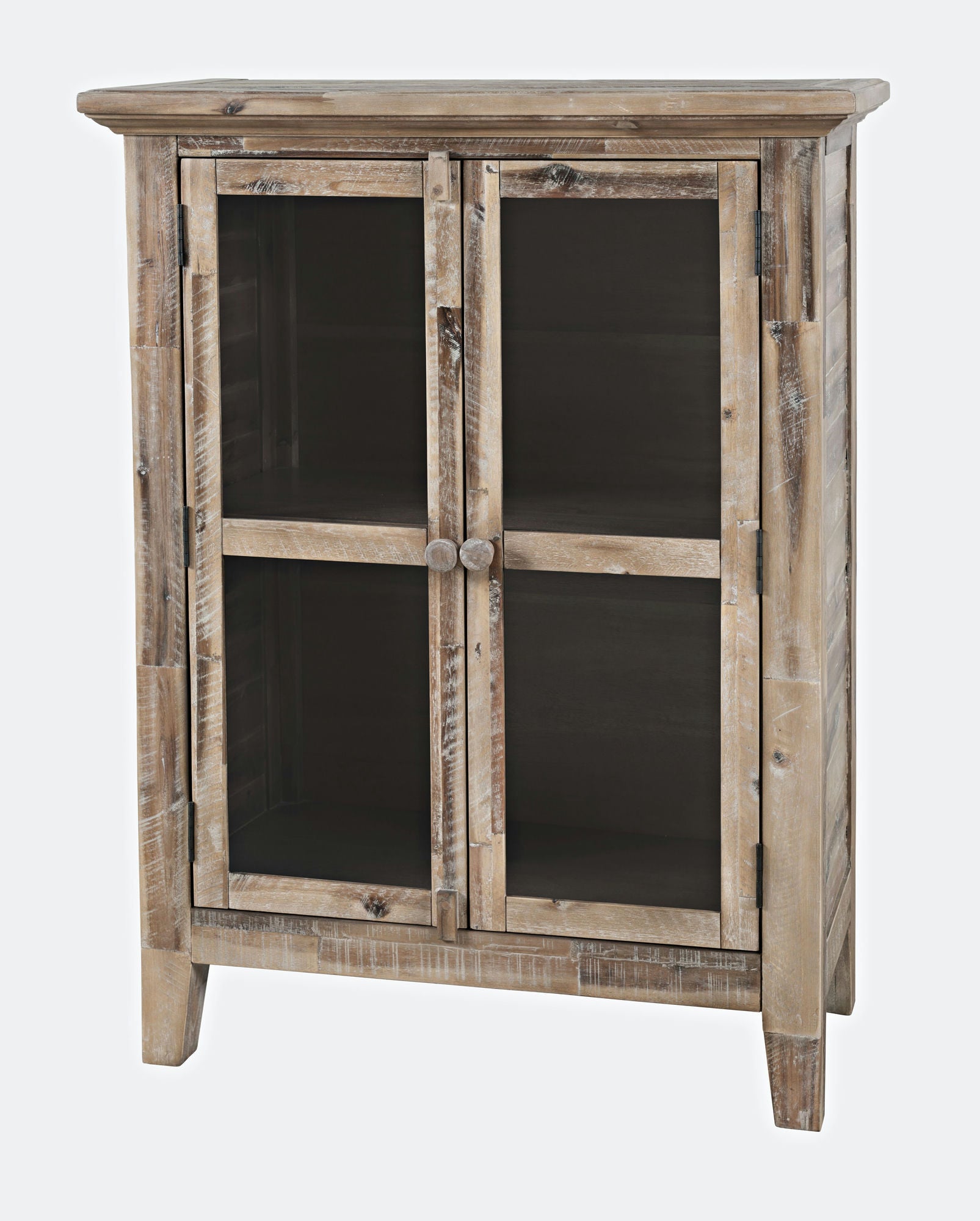 The relaxed coastal style of distressed hardwood Acacia provides the perfect rustic centerpiece for your home with this 32" Rustic Shores Accent Cabinet. The compact design has two doors with solid tempered glass and two adjustable shelves, and the unique weathered finish is completely one-of-a-kind.