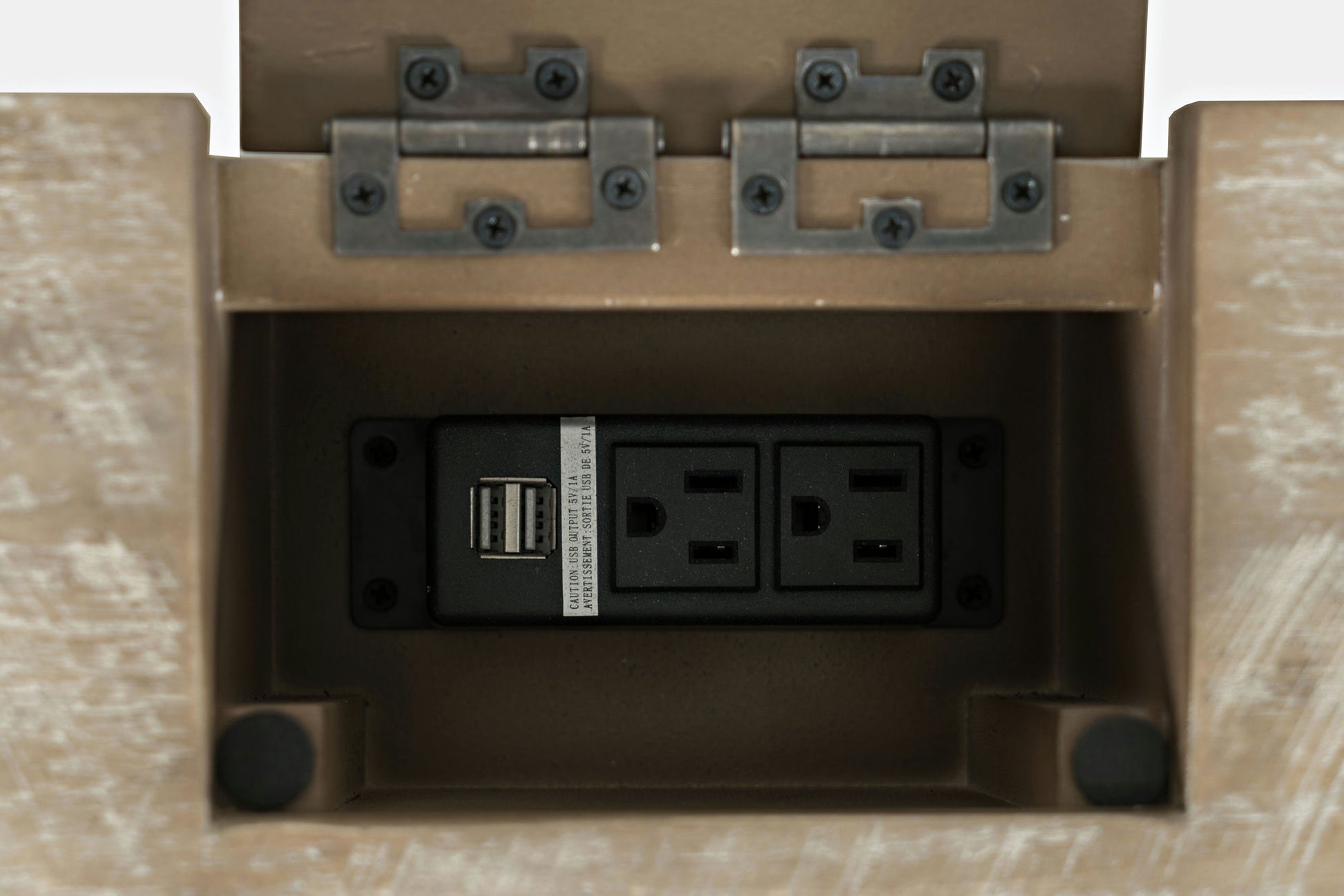 The relaxed coastal style of distressed hardwood Acacia provides the perfect rustic centerpiece for your Home Office or Distance Learning setup with this 56" USB Charging Desk. With five built-in traditional drawers for storage and a hidden charging station built into the top that contains two USB ports and two full size power outlets for keeping your devices powered and organized.