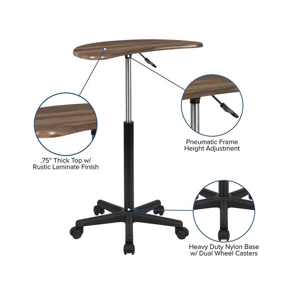 Rustic Walnut Sit to Stand Mobile Laptop Computer Desk