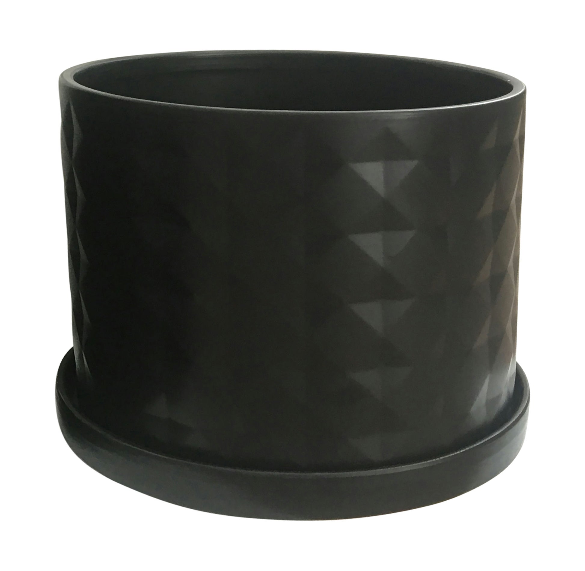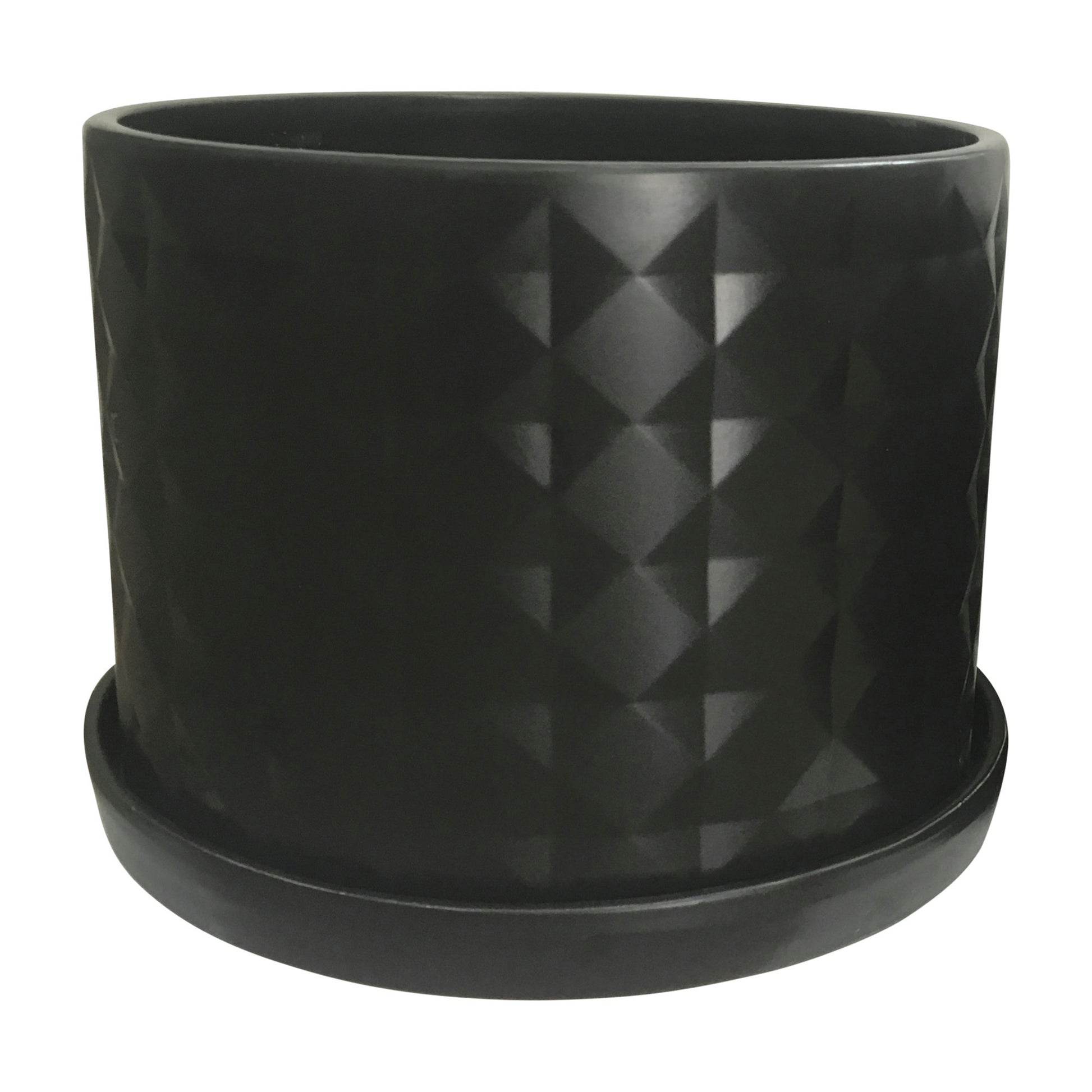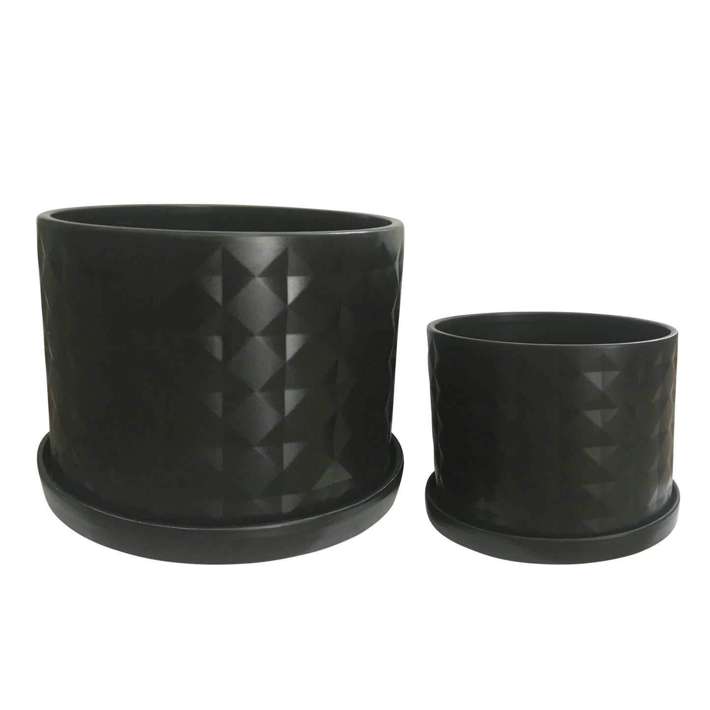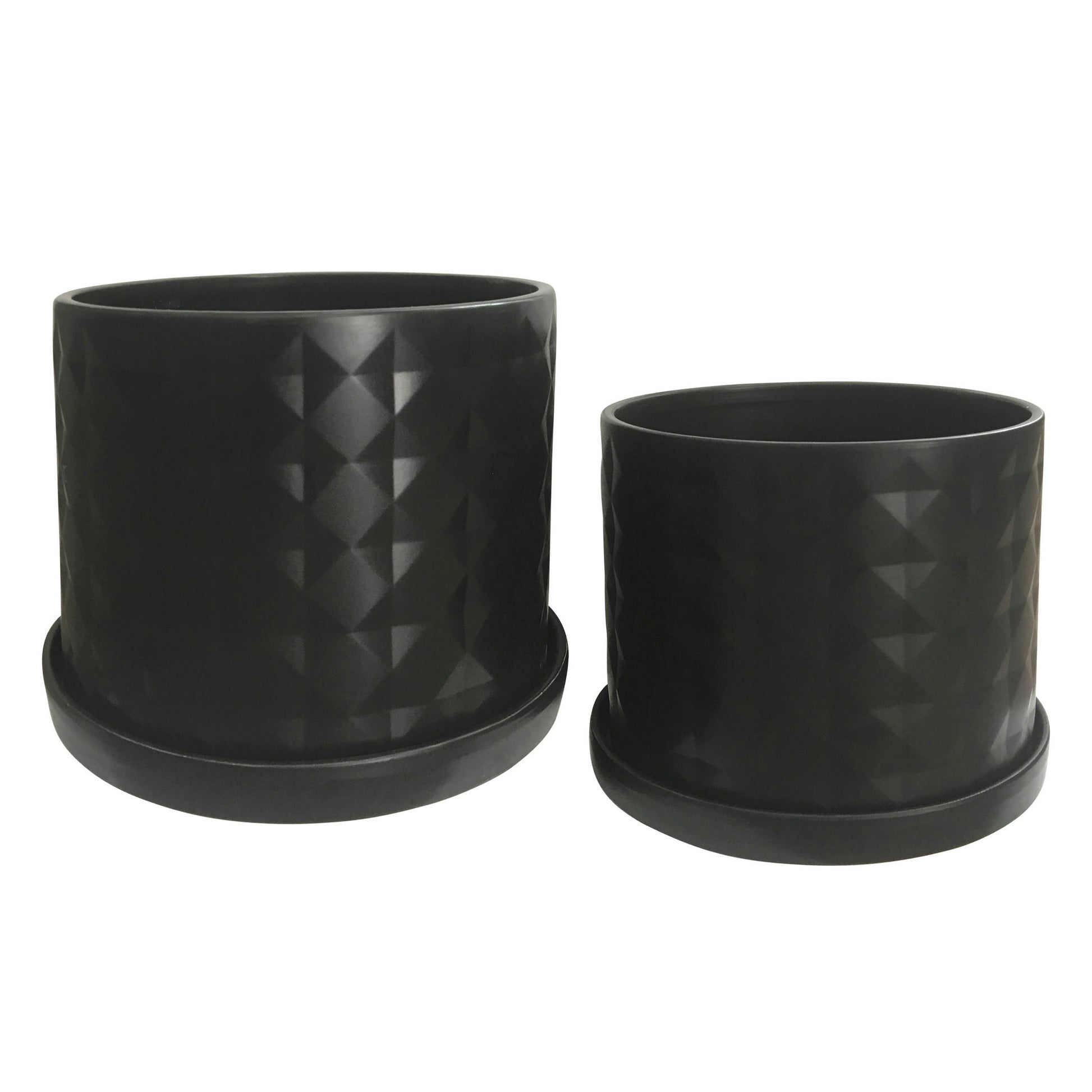 S/2 10/12" Diamond Planter W/ Saucer, Black